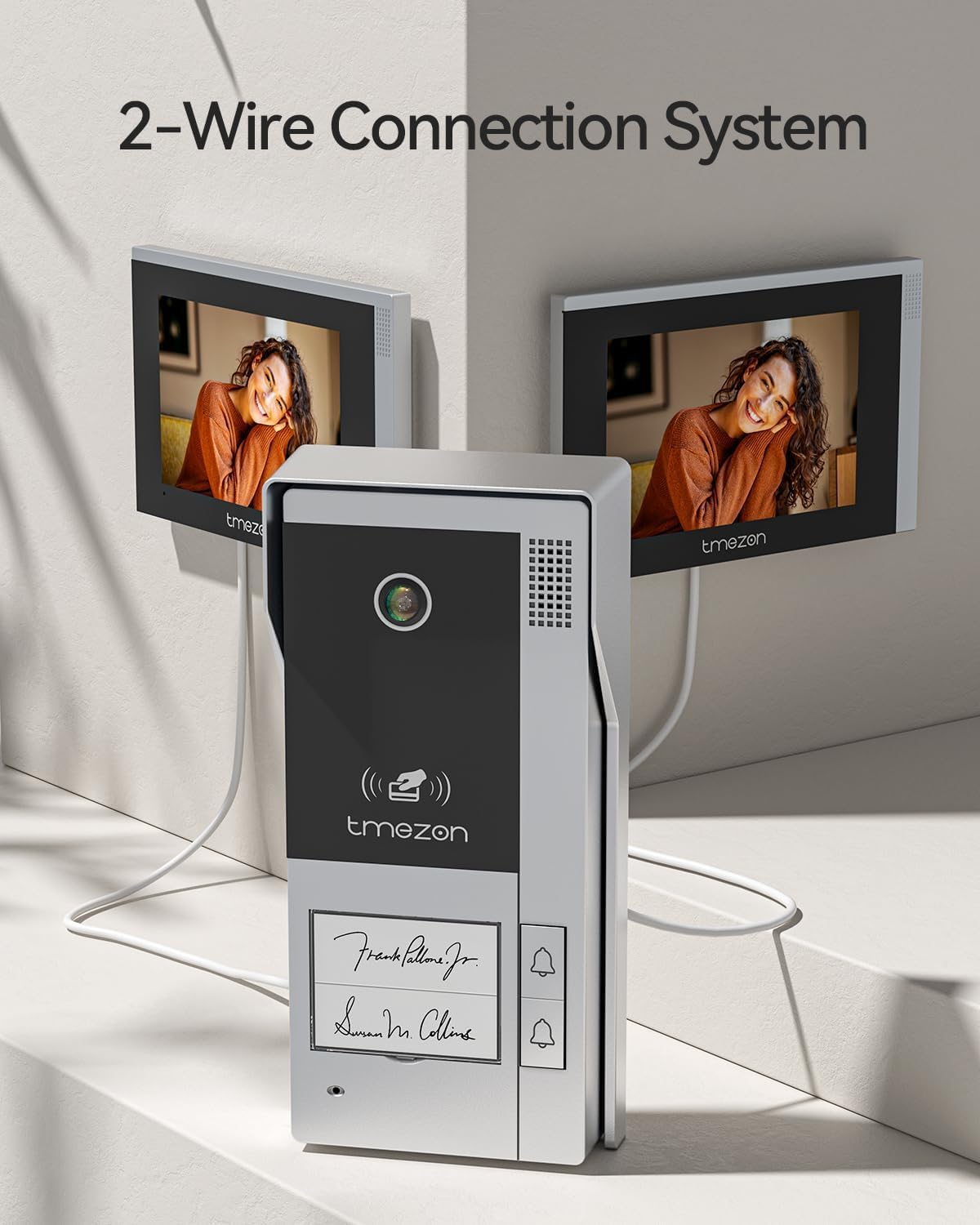 Stable Wired Connection - Tmezon wifi video intercom system is not wireless, but the monitor supports WIFI network. The indoor monitor and doorbell are wired for stable power and video, with longer distance extension.