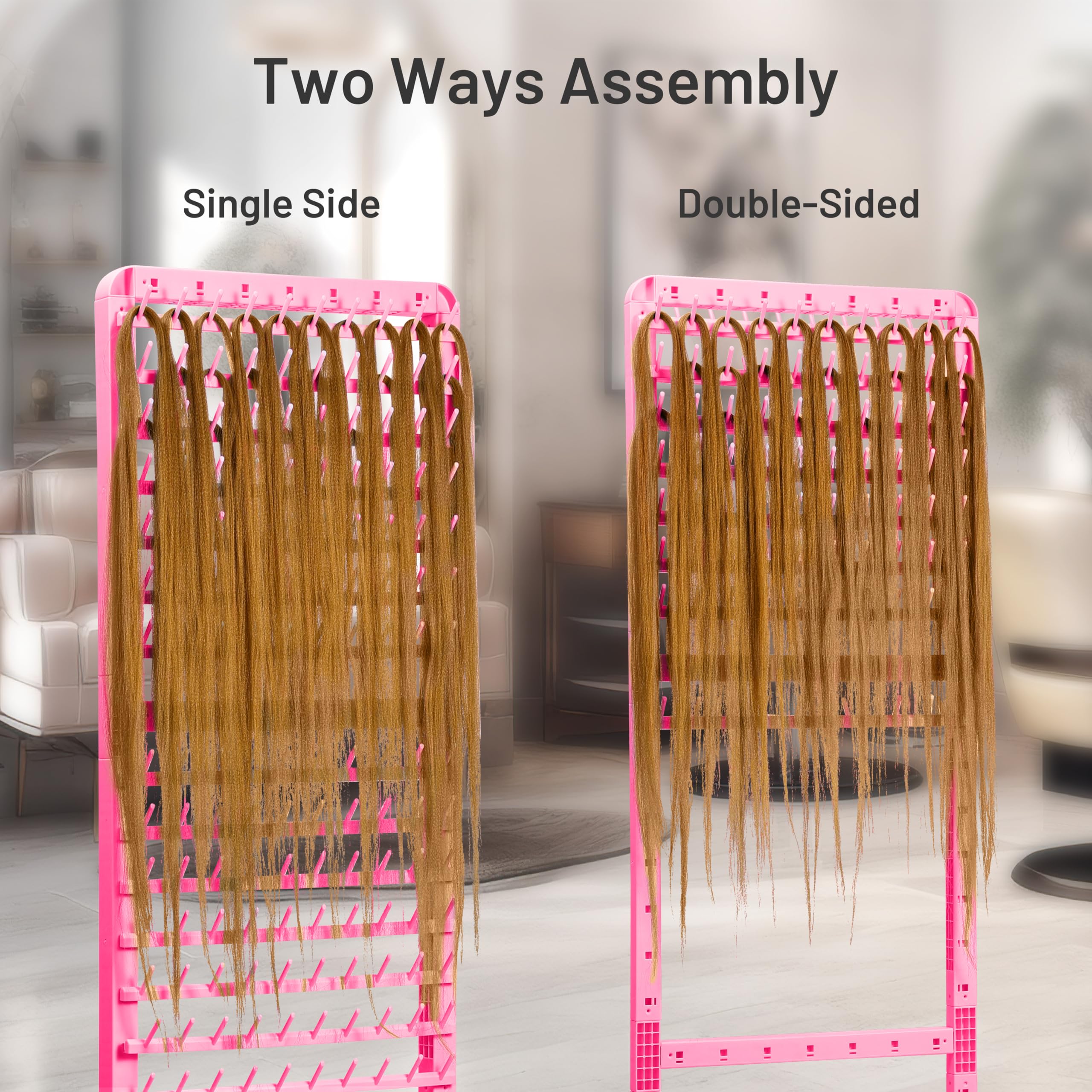 Efficient Braid Rack: Let hair say goodbye to knots and messes, no need to stop and organize your hair over and over again, Whether you work with weave hair, natural hair, long braiding hair, different lengths, or a range of colors, offer hair stylists and braiders an organized storage solution for hair extensions, a must-have for hair stylists to improve their efficiency, allowing you to serve more guests in less time