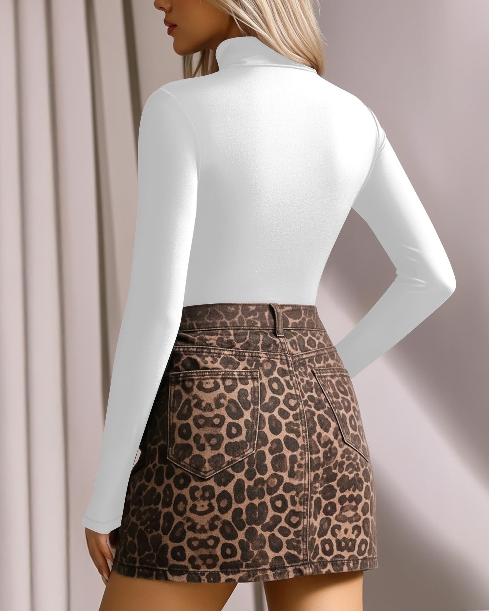 Versatile Style: Women's mock neck bodysuit is comfortable and versatile, easily paired with pants, shorts, or skirts to enhance your look. It features two snap buttons at the bottom for convenient wear.