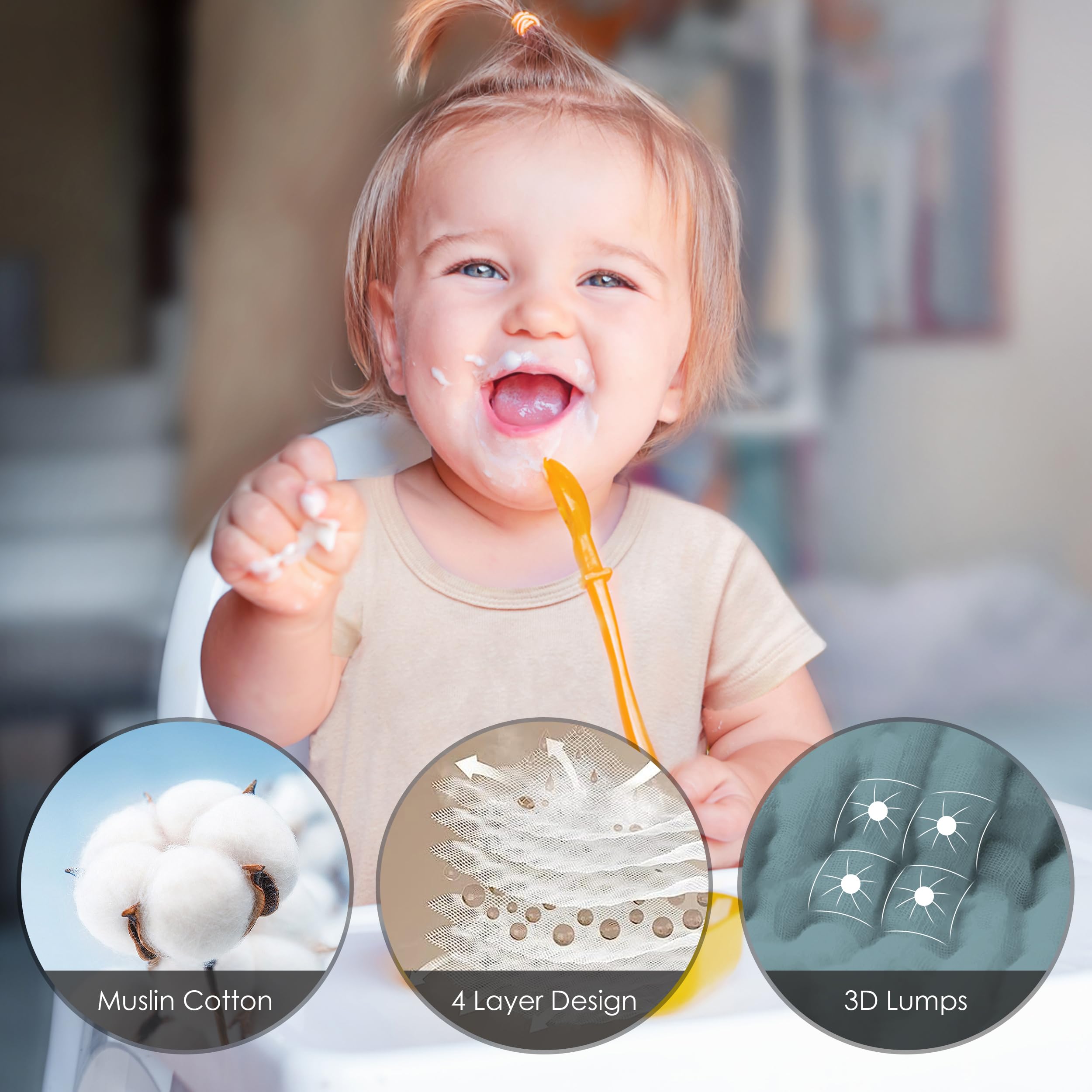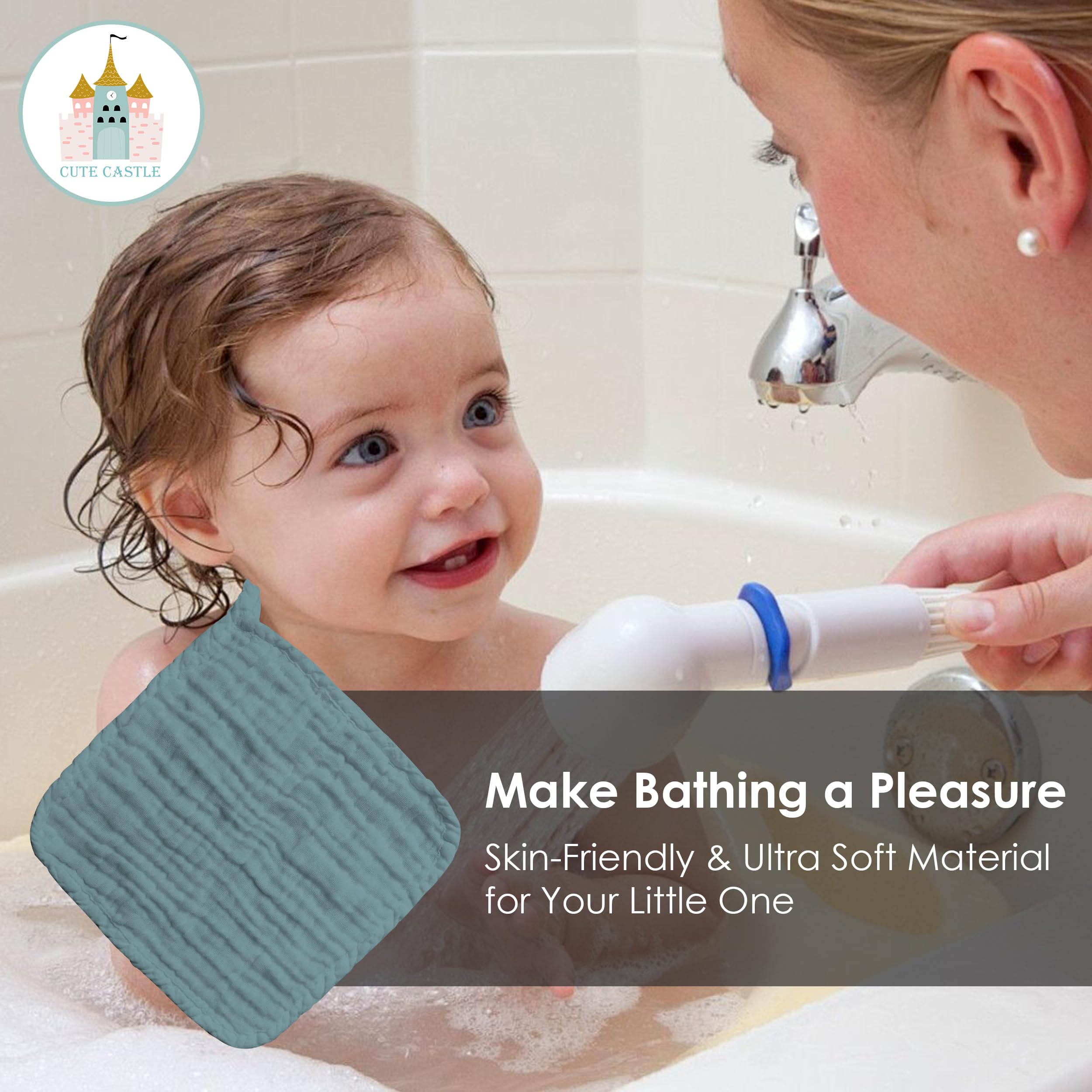 【Premium Muslin Cotton Washcloths】Indulge your baby with these ultra-soft and absorbent washcloths, crafted from 100% Muslin Cotton for a gentle touch on delicate skin.