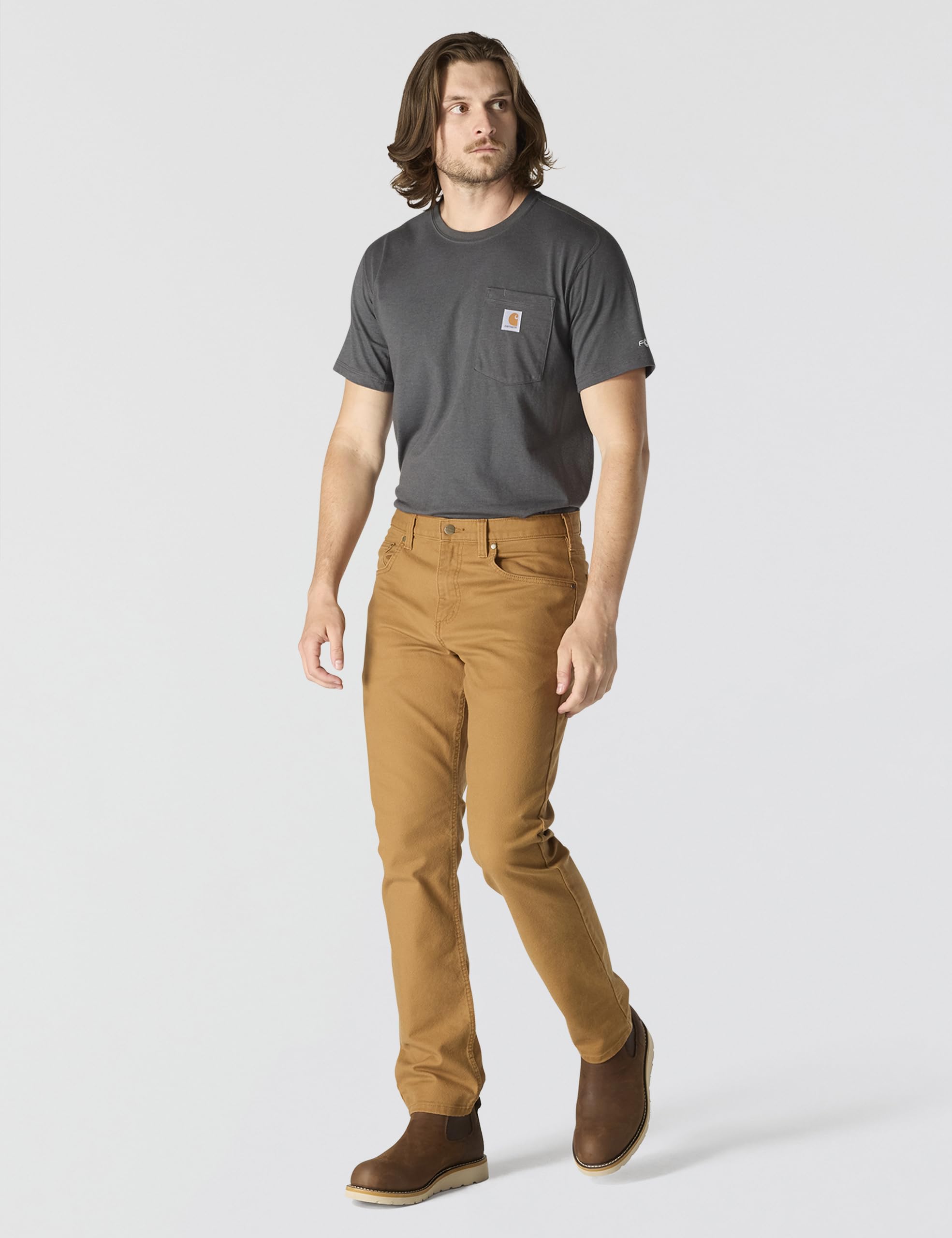 Description Reliably rugged, these men's Carhartt pants have a closer-to-the-body fit and plenty of pockets for all your daily essentials. They're built to move, stretch, and flex with you as you work.