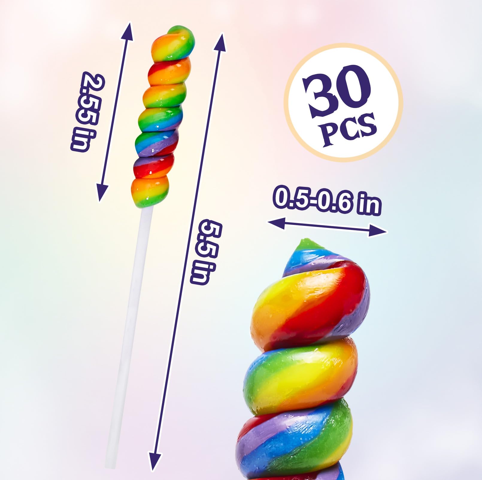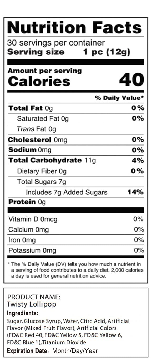 These twisty lollipop are the best choice for giving gifts or sharing with others, Perfect as a Christmas/Halloween/birthday gift for your children or friends.Show your loved ones how much they mean to you by sharing these candies, and bringing an enjoyable fruity chewing experience.