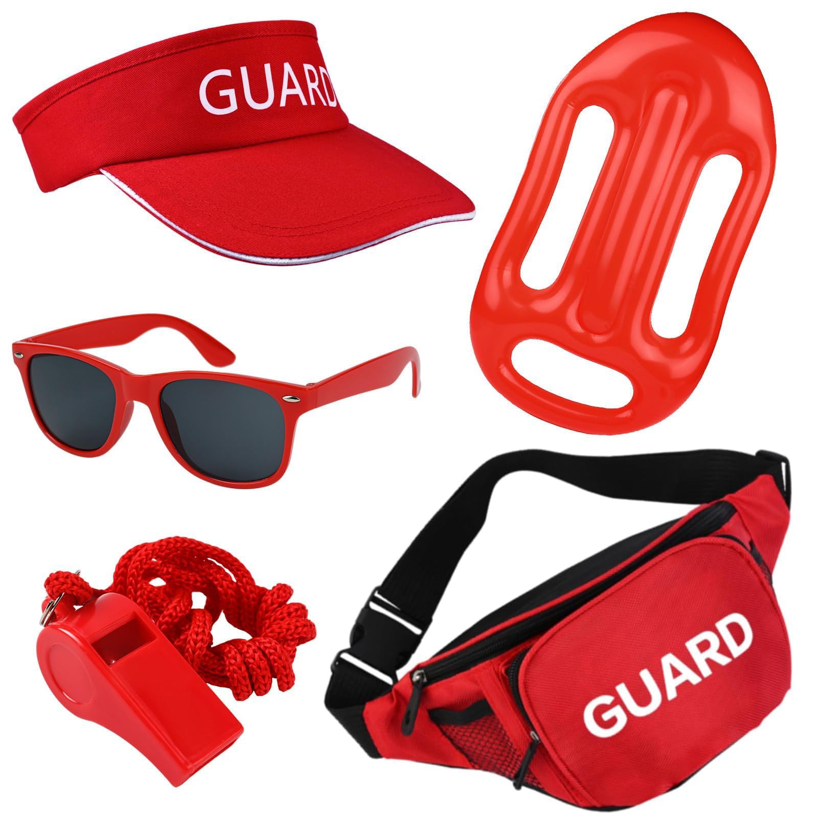 【Complete Guard Accessories Set】You will get a printing sun visor,a pair of red sunglasses,a inflatable floatand, ideal combination for you to wear, you can wear them on various party and it will make you eye catching in the crowd,you can also share them with your friends.