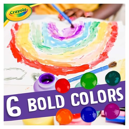CRAYOLA WASHABLE PROJECT PAINT: Washable paint in 6 bold colors including Yellow, Green, Yellow Orange, Red Orange, Fuchsia, Teal, and Blue Violet.