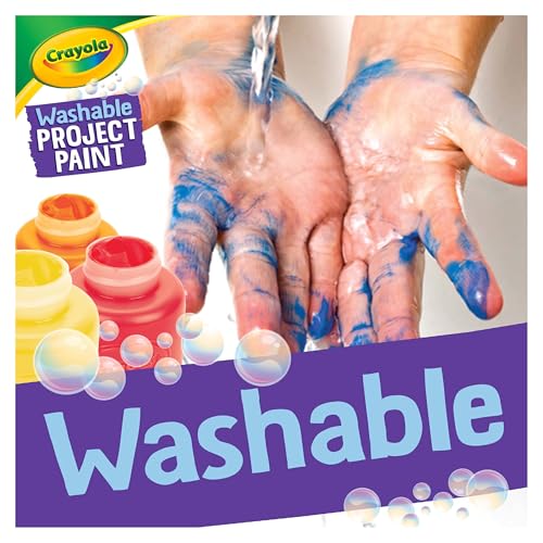 WASHABLE KIDS PAINTING SUPPLIES: Crayola Washable Project Paint is washable from skin and most washable clothing.