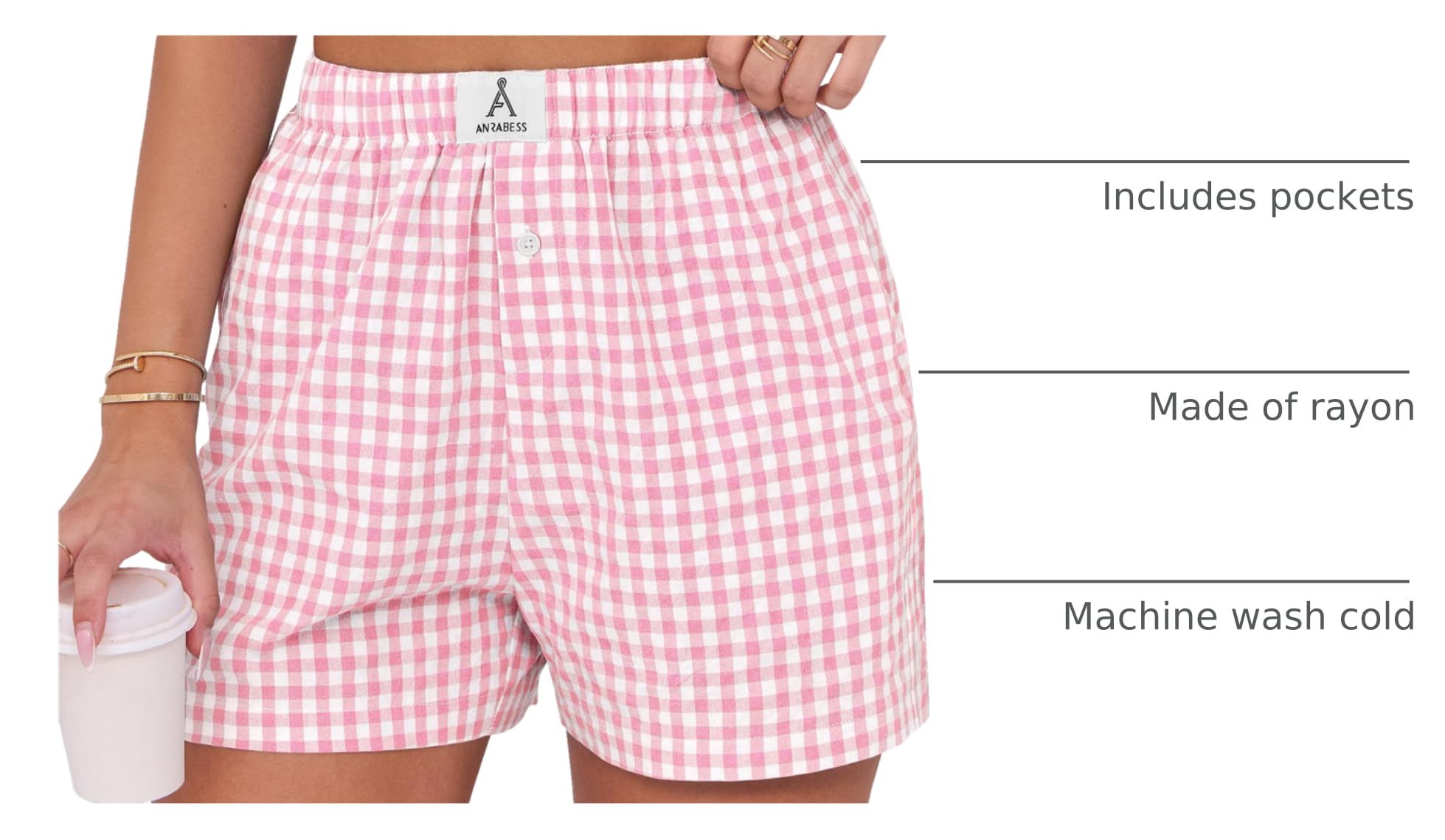 Washing - Machine wash cold gently with like colors. Do not bleach or iron. Red gingham shorts, red boxer shorts women, orange gingham shorts, blue boxer shorts women, black gingham shorts, pink gingham shorts, brown boxer shorts for women, black and white gingham shorts, red and white gingham shorts, blue striped shorts, black and white shorts
