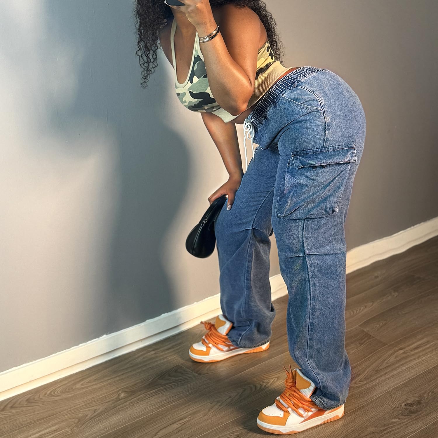 Matching: Boyfriend jeans. The stretchy baggy jeans for women are suitable for both mom and girls to dress up, with a very trendy and cool style. It is very fashionable and eye-catching in all seasons. Particularly suitable for pairing with crop tops, sneakers, boots, etc., very easy to complete a fashionable styling.