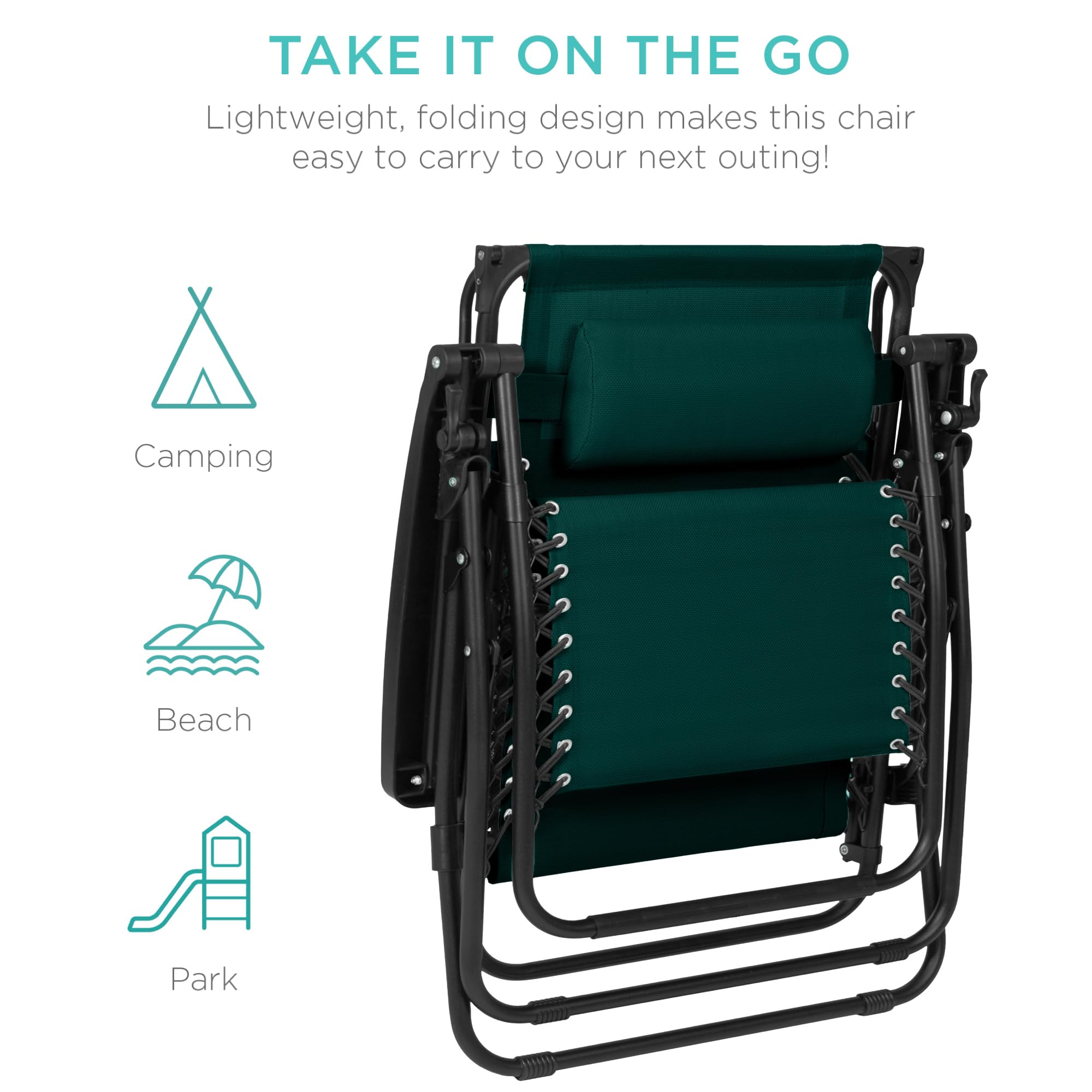 BUILT-IN COMFORT & CONVENIENCE: Features a removable headrest for personalized neck support and a detachable tray with cup and phone holders, keeping your essentials close while you lounge in zero gravity comfort; OVERALL DIMENSIONS: 34"(L) x 30"(W) x 49"(H); WEIGHT CAPACITY: 440 lbs