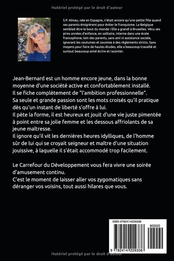 Jean-Bernard est un homme encore jeune, dans la bonne moyenne d'une société active, et confortablement installé. Il se fiche complètement de " l'ambition professionnelle ". Les mots croisés sont sa seule et grande passion qu'il pratique dès qu'un instant de liberté s'offre à lui. Il pète la forme, il est heureux et jouit d'une vie juste pimentée à point entre sa jolie femme et les dessous affriolants de sa jeune maîtresse. Il ignore qu'il vit les dernières heures idylliques de l'homme, sûr de lui, qui se croyait seigneur et maître d'une situation jouissive, à laquelle il s'était accommodé trop facilement. Le Carrefour du développement vous fera vivre une soirée d'amusement continu. C'est le moment de laisser aller vos zygomatiques sans déranger vos voisins, tout aussi hilares que vous.