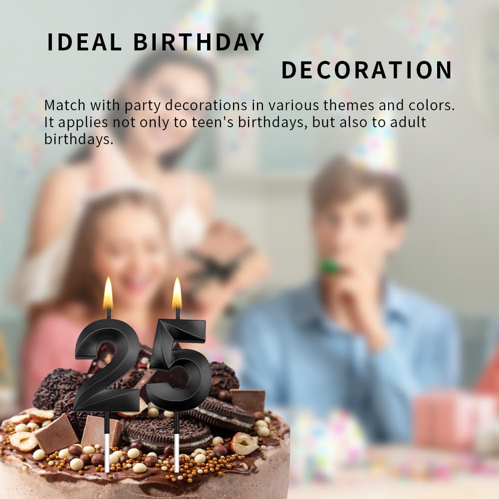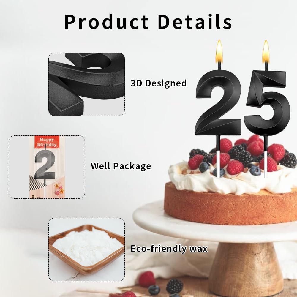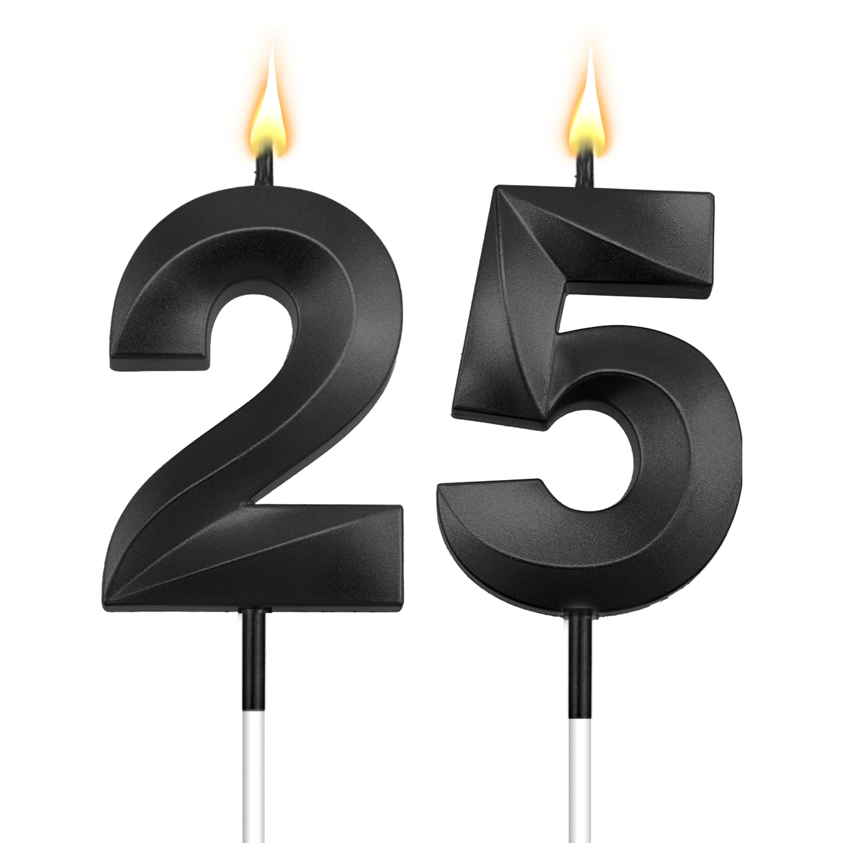 3d Visual Sense Birthday Candles: Package contains 2 Pcs black birthday candles 25 including number 2 birthday candle and number 5 birthday candle.