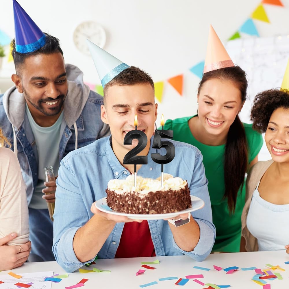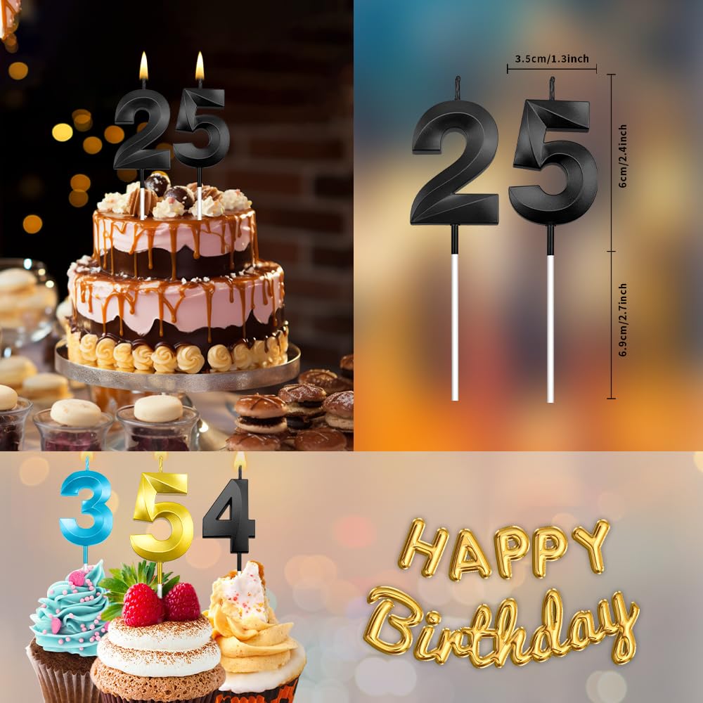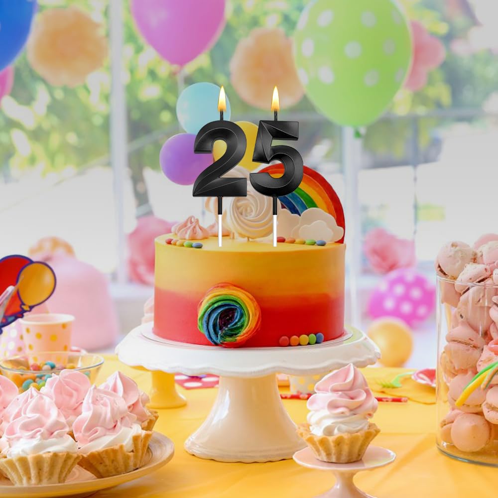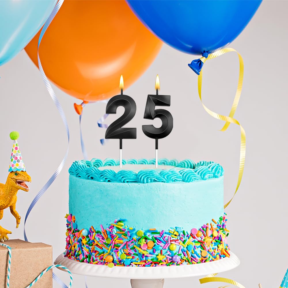 3d Visual Sense Birthday Candles: Package contains 2 Pcs black birthday candles 25 including number 2 birthday candle and number 5 birthday candle.
