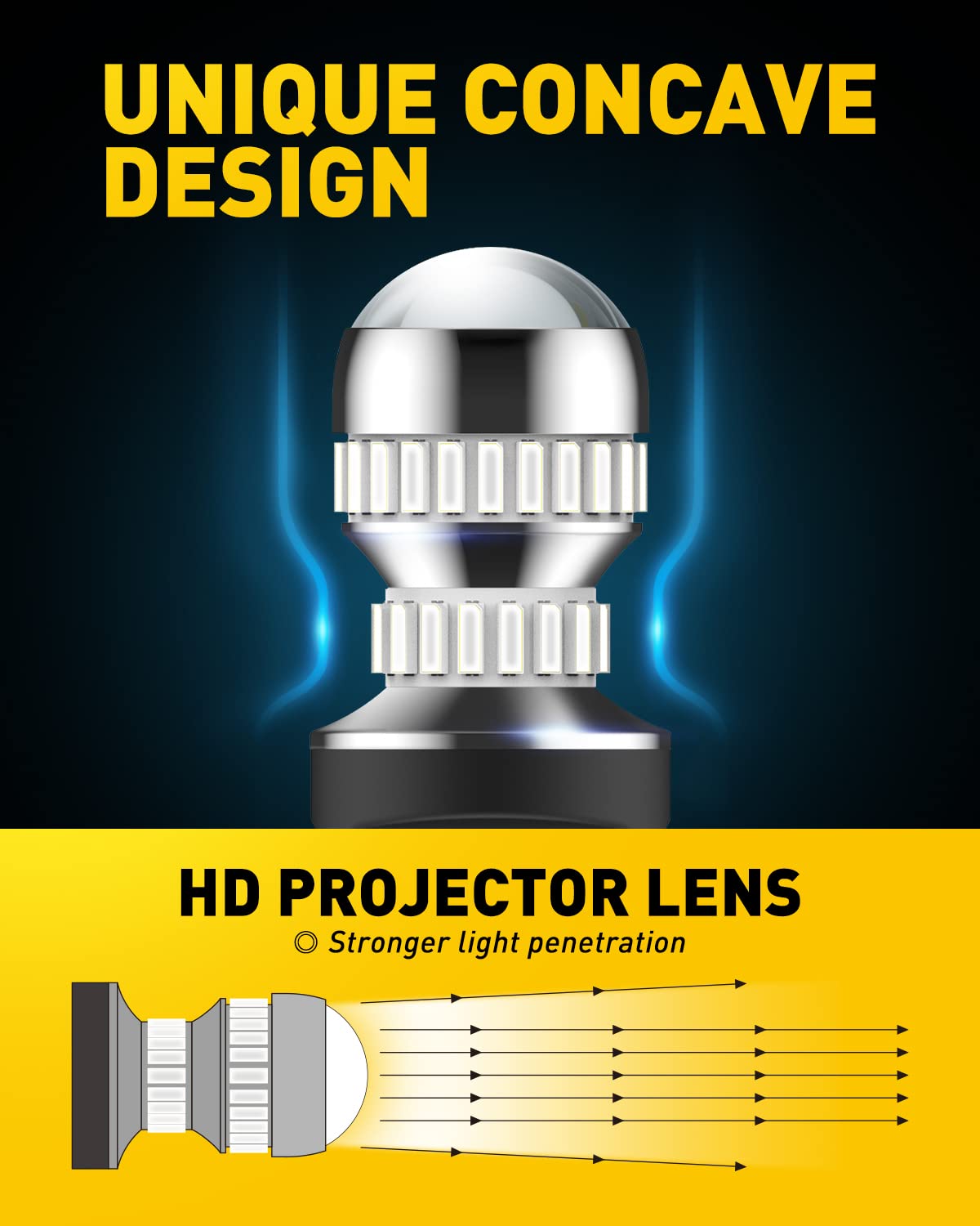 Resembling halogen bulb shape design and sequencing 54 pieces 4014-SMD LED chips precisely around the 3157 led bulb. Delivering 360° high luminous efficiency with full brilliant red light, more visible when braking