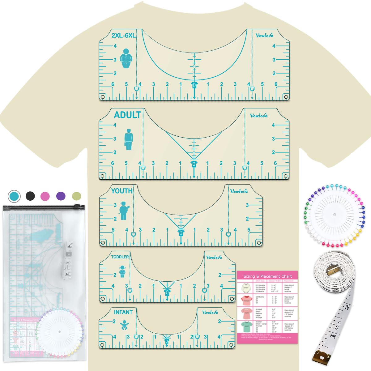 What You Get: 5 t-shirt rulers, 1 measuring tape, 40 multi-color pins for fixing & 1 product instruction to let you know the size and placement of your design. Suitable for various types of shirts