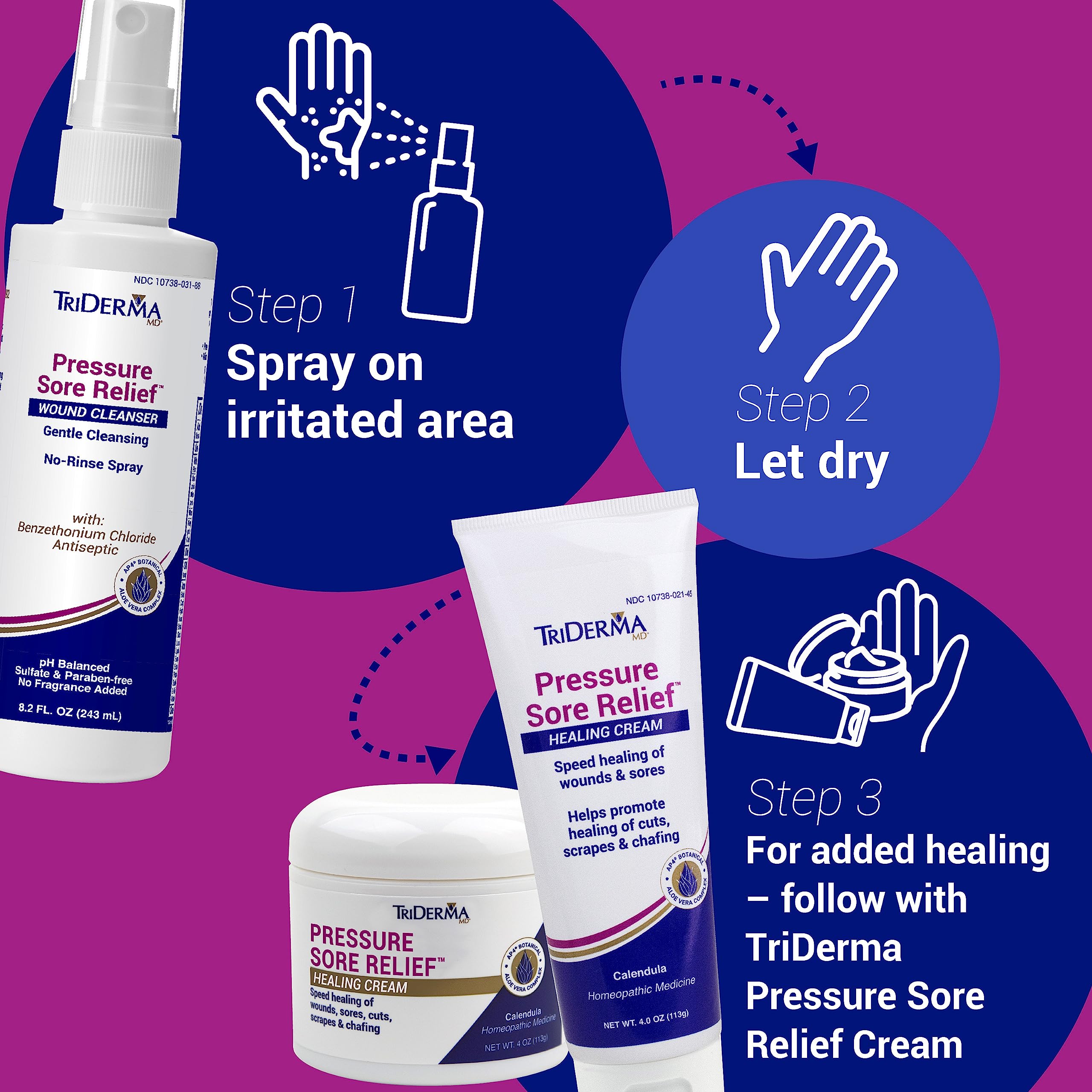 An effective wound cleaner this can be followed with a bed sore cream like TriDerma Pressure Sore Relief Healing Cream. TriDerma has been making safe and effective health care products since 1992