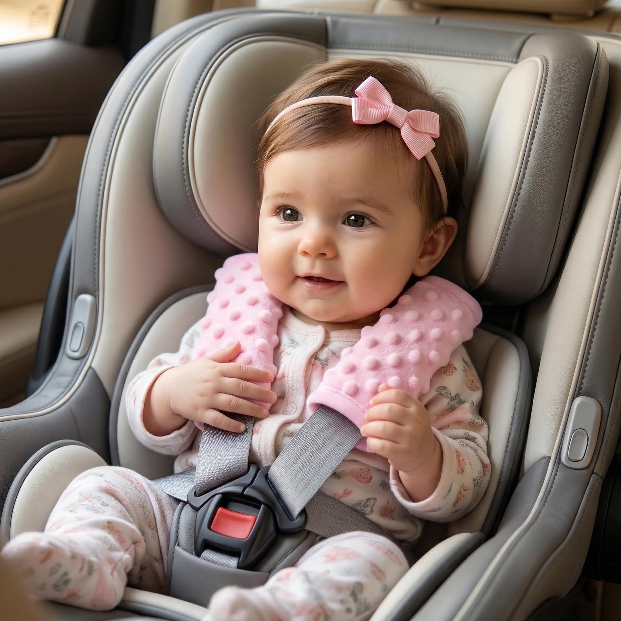 【Perfect Match】: Our pink car seat strap cover is a perfect match to our pink car seat infant insert. Search ASIN "B08FMM4TG5" to get Pro Goleem matching car seat infant insert