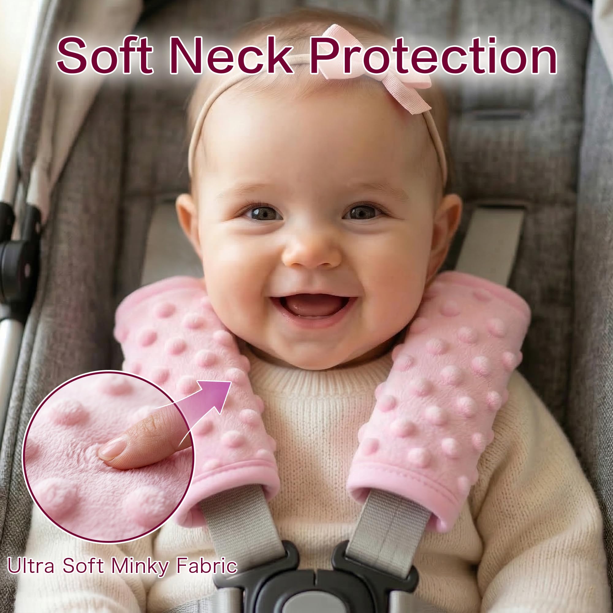 【Protection for Babies】:Our car seat strap covers are made of extra soft polyurethane foam and minky dot fabric, which can give comfort and protection for babies to prevent them from rubbing and irritation from car seat straps
