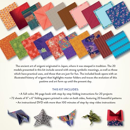 Make traditional, simple and fun papercraft models with this easy origami book and paper kit. The ancient art of origami originated in Japan, where it is steeped in traditional values. The 20 models presented in this kit include many with strong symbolic meanings, such as the carp, the frog and the crane, which symbolize longevity, good luck and perseverance. Also included in this kit are paper models which have practical uses, such as a bag in which to store spices or powdered medications, the masu box for containing small gifts, and uniquely shaped notes with elaborate closures. The more playful side of origami is represented as well: the stylized sumo wrestler with realistic moves has entertained Japanese children for centuries, and the paper Samurai hat is a favorite of kids. This origami kit contains: A full color, 96-page book Step-by-step folding instructions 20 classic origami projects 72 sheets of 6'' x 6'' folding papers Double-sided color 20 beautiful patterns Over 100 minutes of video tutorials Videos are also streamable or downloadable online Origami is an ideal activity for children since paper folding develops dexterity and creativity. Origami is also a craft based on a few fundamental 3D folding techniques. Japanese Origami for Beginners Kit is a useful starting point for fans of all ages and abilities. Although this book is aimed at origami beginners, it contains projects suitable for origami fans of all ages and abilities and is the perfect book for all those who enjoy making things with their hands. All media content is alternatively accessible on the Tuttle Publishing website.