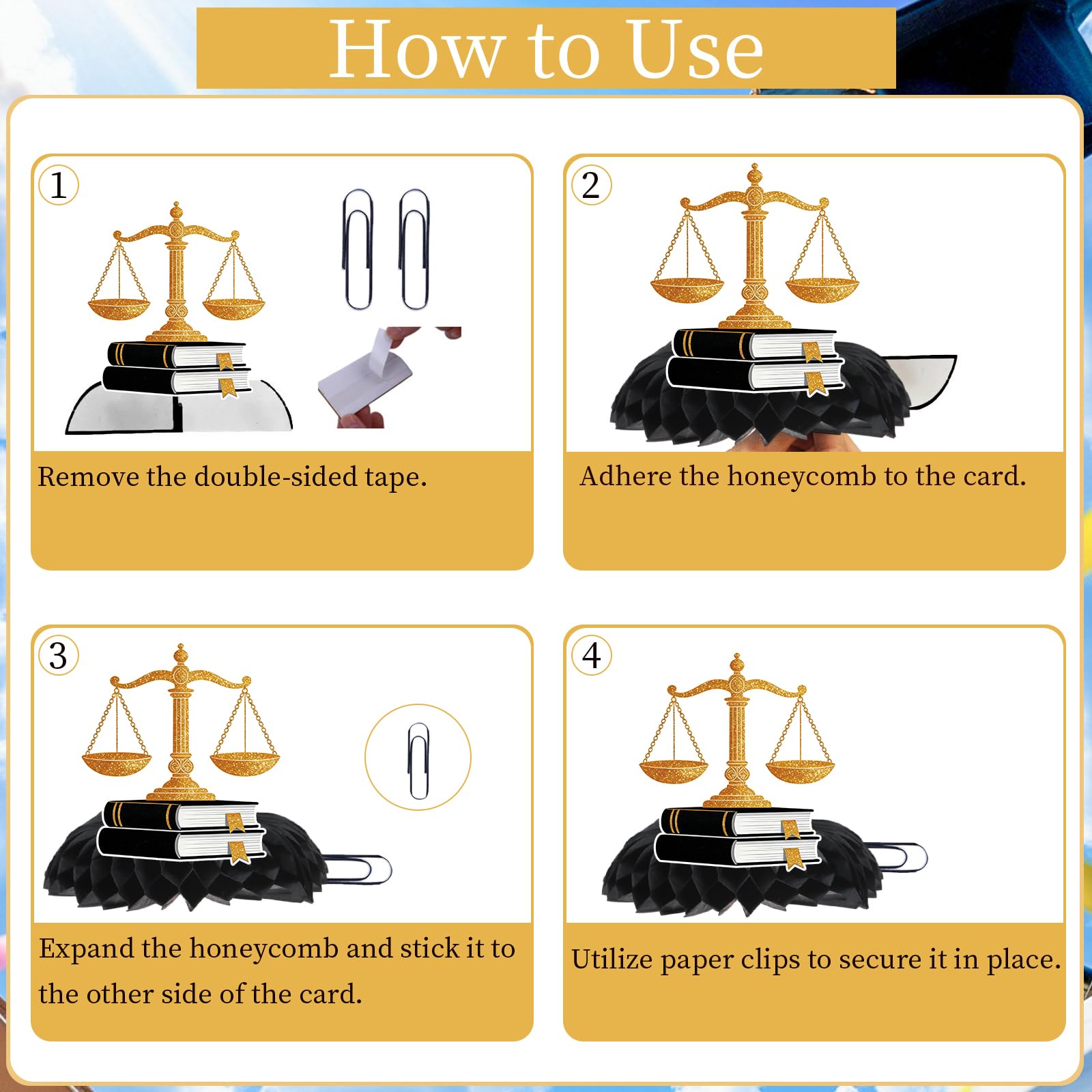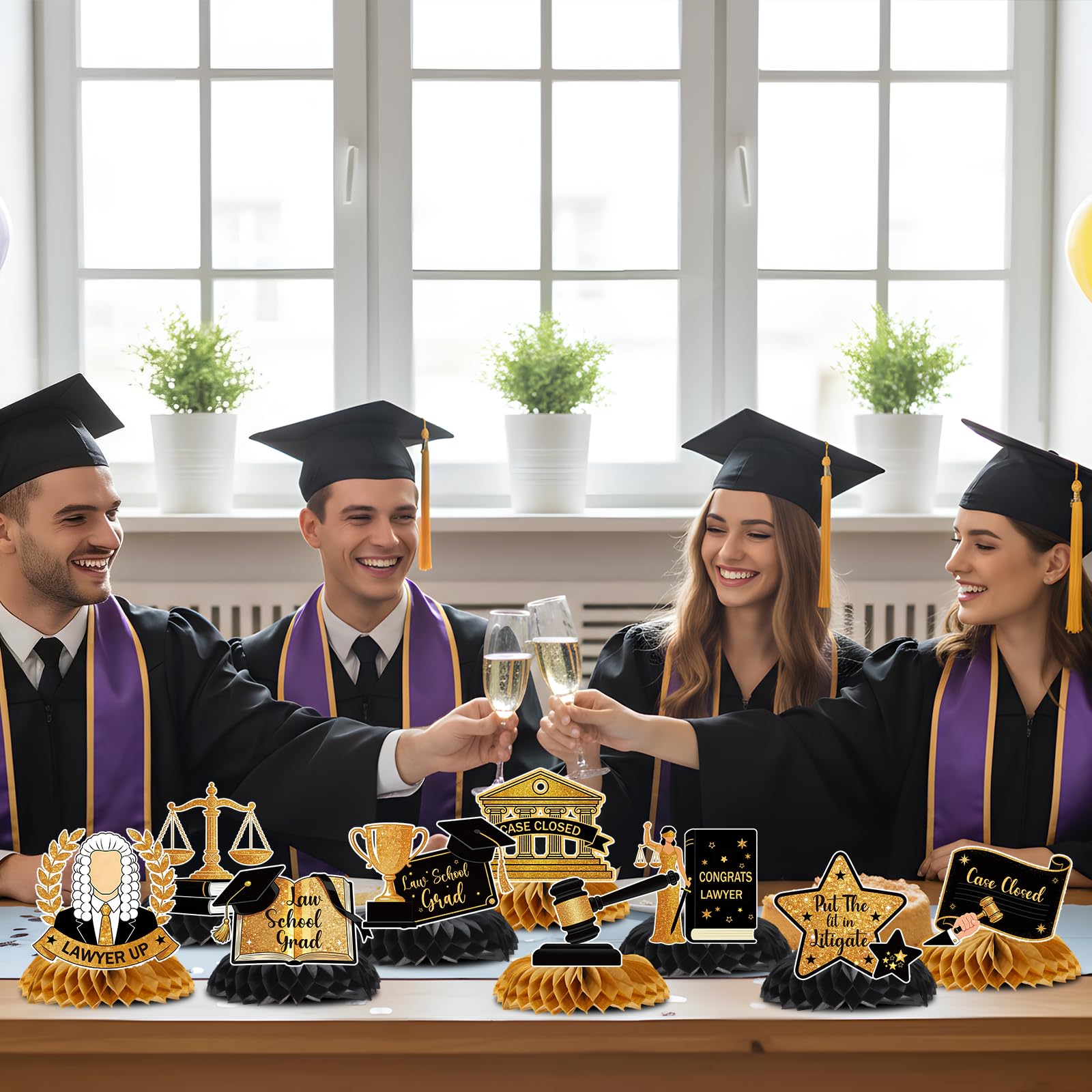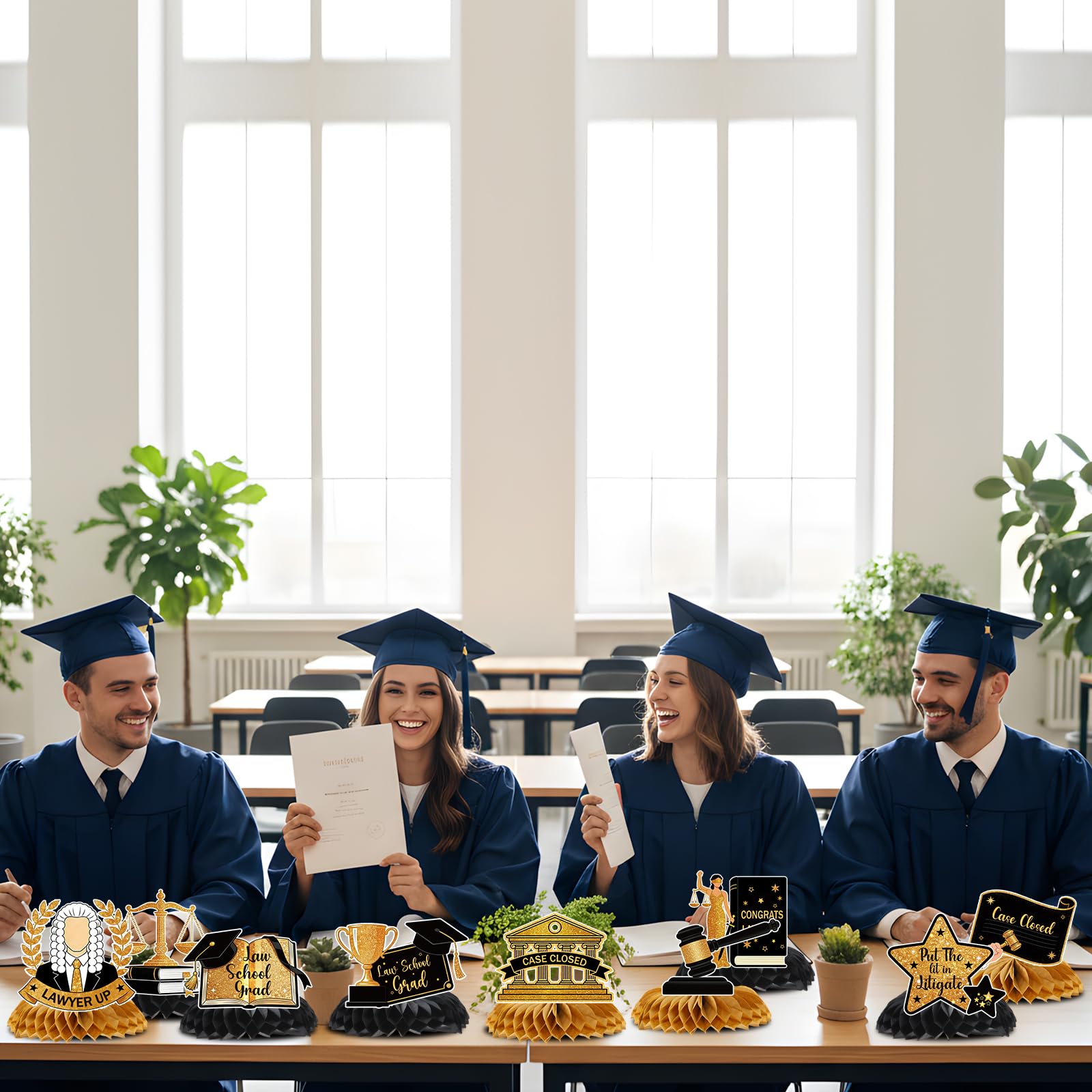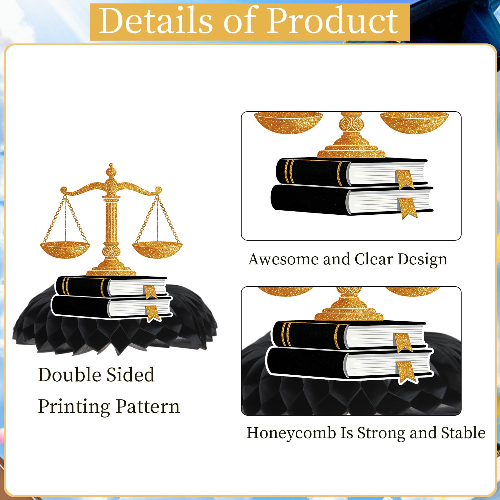Theme Design: These honeycomb centerpieces feature legal motifs like scales of justice and gavels, creating a cohesive law school graduation theme that enhances your criminal justice party decor