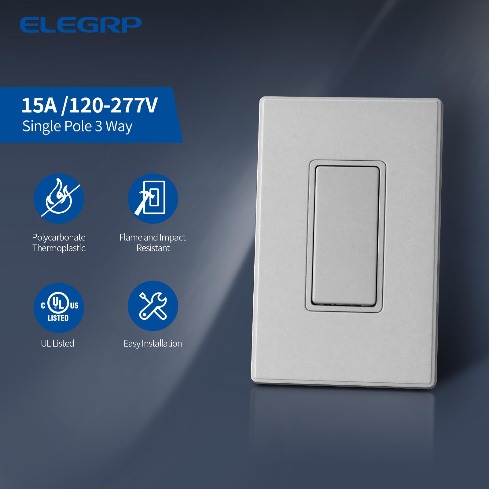 【3 Way Decorator Switch】This residential grade three way wall switch can operate a lighting fixture up to 15 amps. The switch is compatible in either single pole or 3-way installations in which a lighting fixture is controlled from two separate locations.