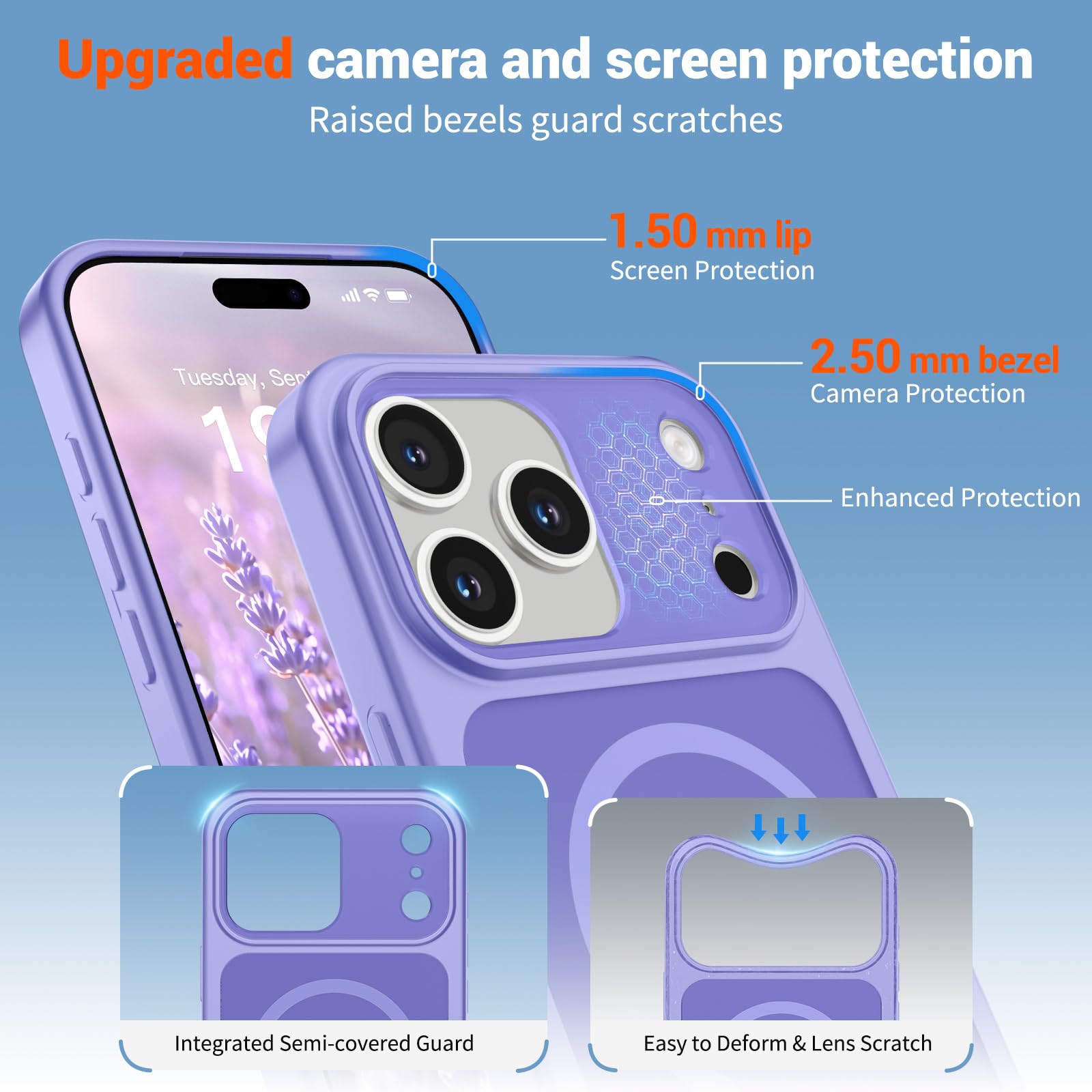 Camera & Shock protection: It features a specially designed half cover lens protective cover to better protect your lens, and it has passed a military drop test of up to 10 feet, effectively preventing severe impacts and drops on your device