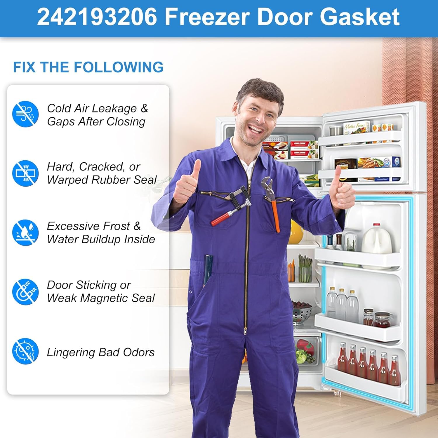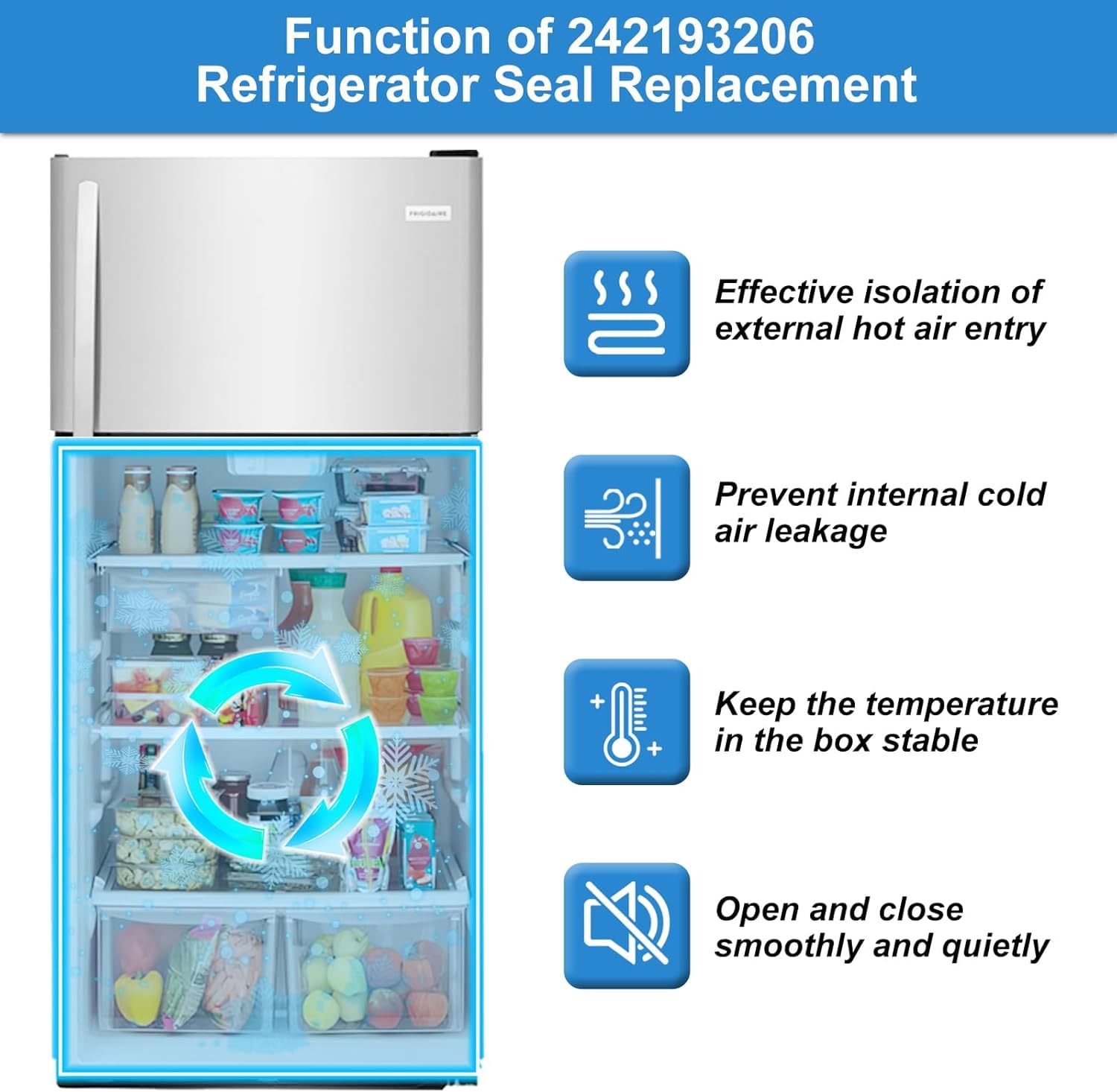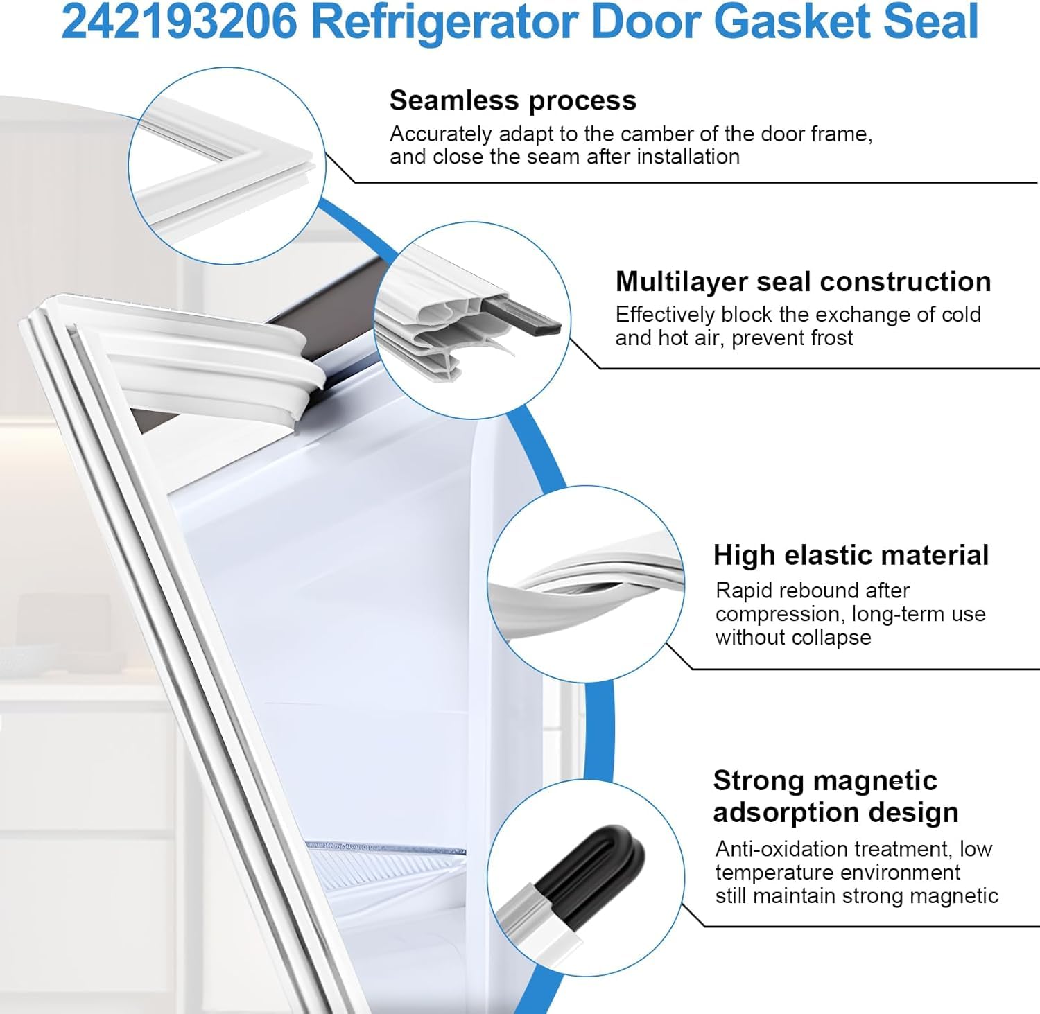 【UPGRADED Durable Materials - Embedded Magnetic Strip】 242193206 refrigerator door gasket is crafted with flexible PVC outer layer and embedded magnetic strip, ensuring optimal insulation by creating a tight seal around the door, preventing 98% cold air leakage. Say goodbye to frost buildup and 20% higher energy bills from inefficient seals! Featuring Cold resistence, high elasticity and flexibility, this 242193206 Frigidaire Door Gasket can quickly return to its original state after deformation.