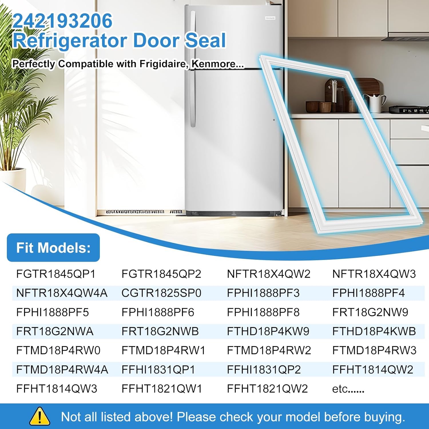 【Compatible Models】The 242193206 refrigerator door seal Compatible with Frigidaire Crosley White-Westinghouse Kenmore refrigerator door gasket parts, Fit models: FFTR1814TWG, FFTR1821TW0, FFTR1814QW8B, FFTR1831QP2, FFTR1828SE0, FFTR1828SE1, FFTR1828SE2, FFTR1828SE3A, FFTR1828SE4A, FFTR1828SP0, FFTR1828SP1, FFTR1828SP2, FFTR1828SP3A, FFTR1828SP4A, FFTR1828SS2, FFHI1817LWB, FFHI1817LWC, FFHI1826LWB, FFHI1826LWC, FFHI1831QP2, FFHI1831QP3, FFHT1814LBC, FFHT1814LMB, FFHT1814LWB, FFHT1814LWC, FFHT1814QW2, FFHT1817LWB, FFTR1814TW4, FFTR1814TW5, 25360412410, 25360412612, 25360502410, 25360502610, 25360504413, 25360504611, CRT185SS0, CRT185SW0, WWTR1811QW2, WWTR1821QW0, WWTR1821QW4A etc.