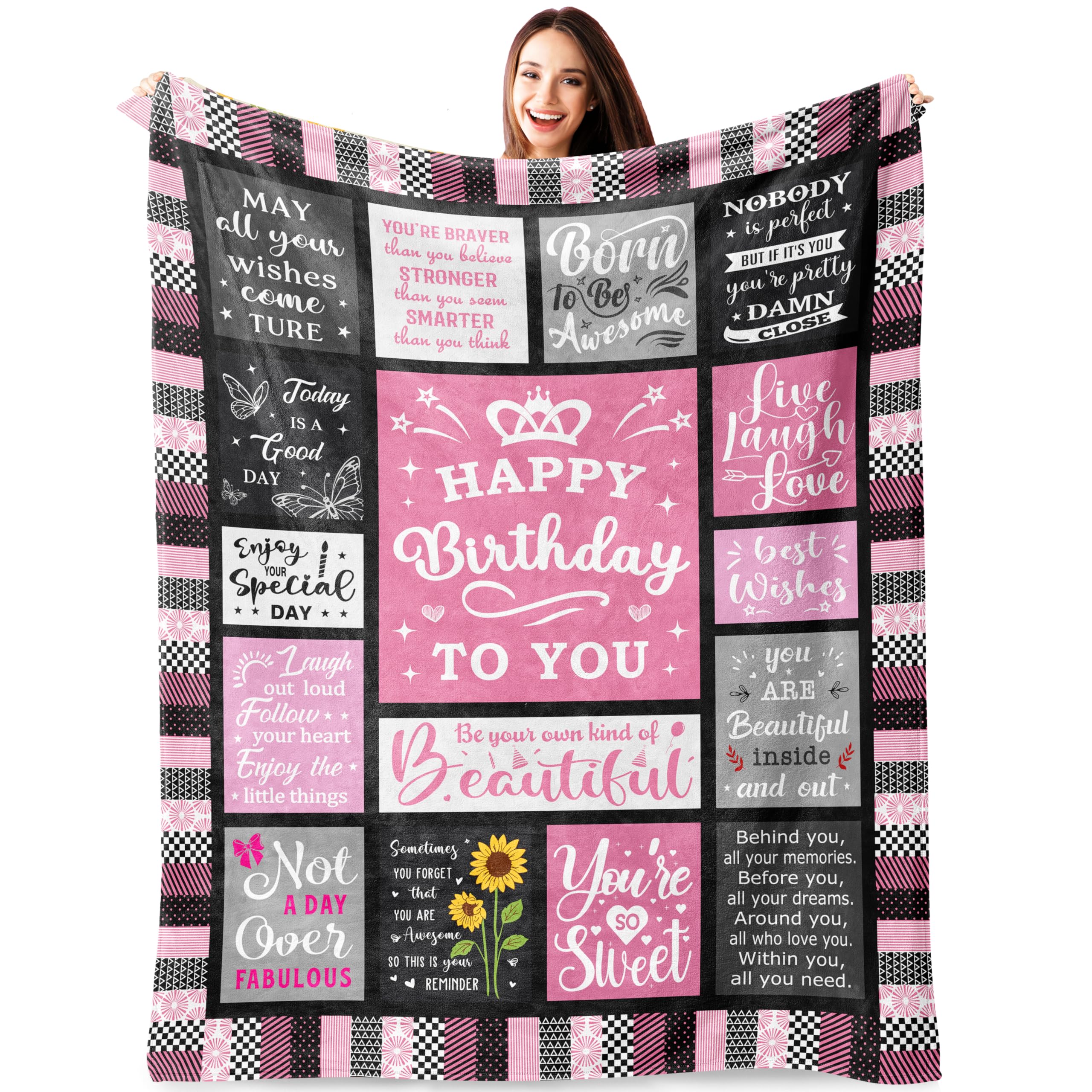 【BIRTHDAY GIFT 】Happy Birthday Gifts for Women! Birthday Gifts for Women. Birthday is a Major Milestone on the Road and One That is Definitely Worth Celebrating. Designed for the Birthday, This Flannel Blanket is a Super Soft Material Perfect for Expressing Love and Warmth. This Birthday Blanket Can Be At Birthday Parties to Express Wishes and Love Given to Relatives and Friends, Such As Mother, Dad, Wife, Husband, Aunt, Uncle, Brother, Sister-in-law, Grandparents, Sisters Etc.