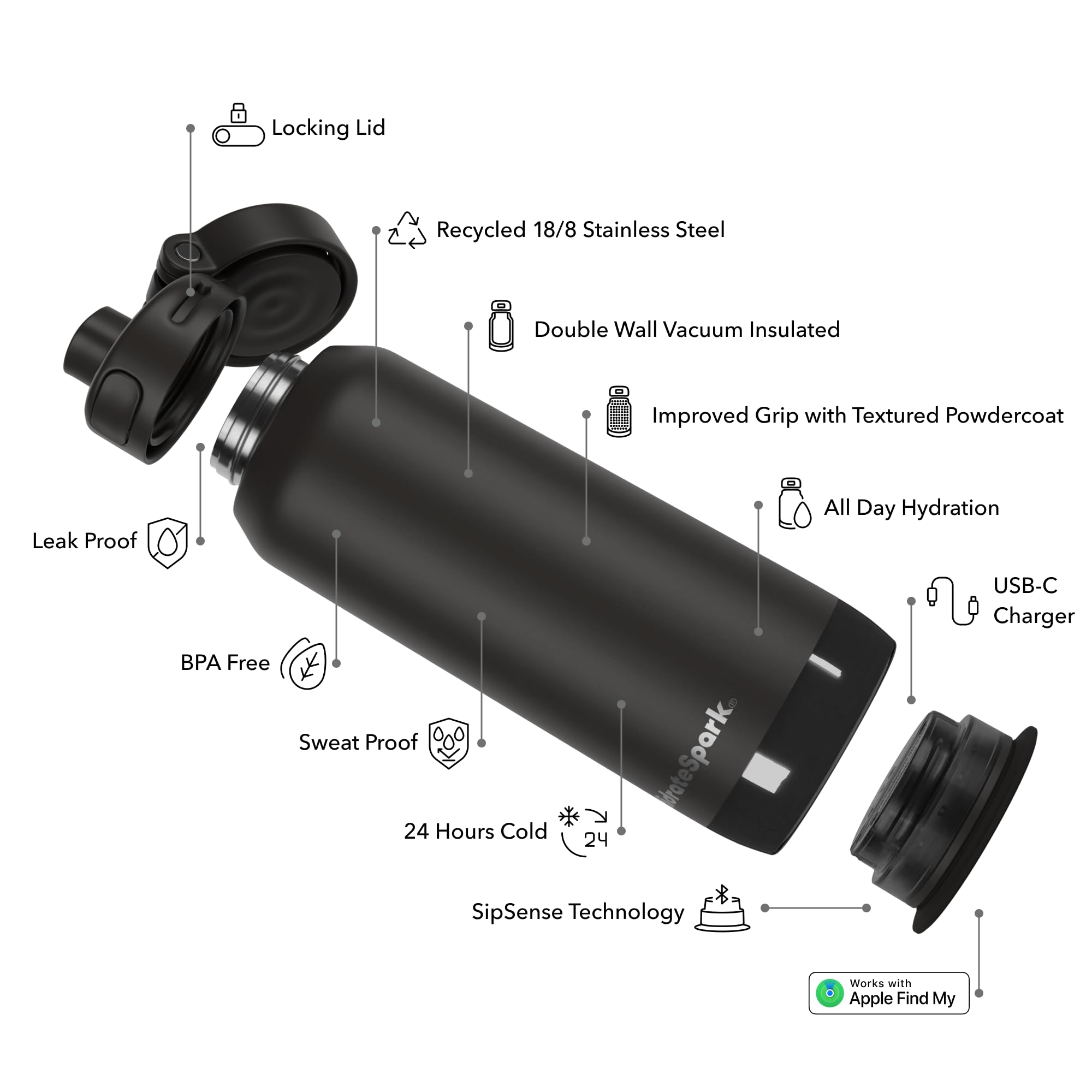AUTOMATIC HYDRATION TRACKING – SipSense powered sensor uses advanced weight sensing to track every sip and syncs to the app to count toward your daily hydration goal. USB-C rechargeable with up to 21 days of battery life per charge.