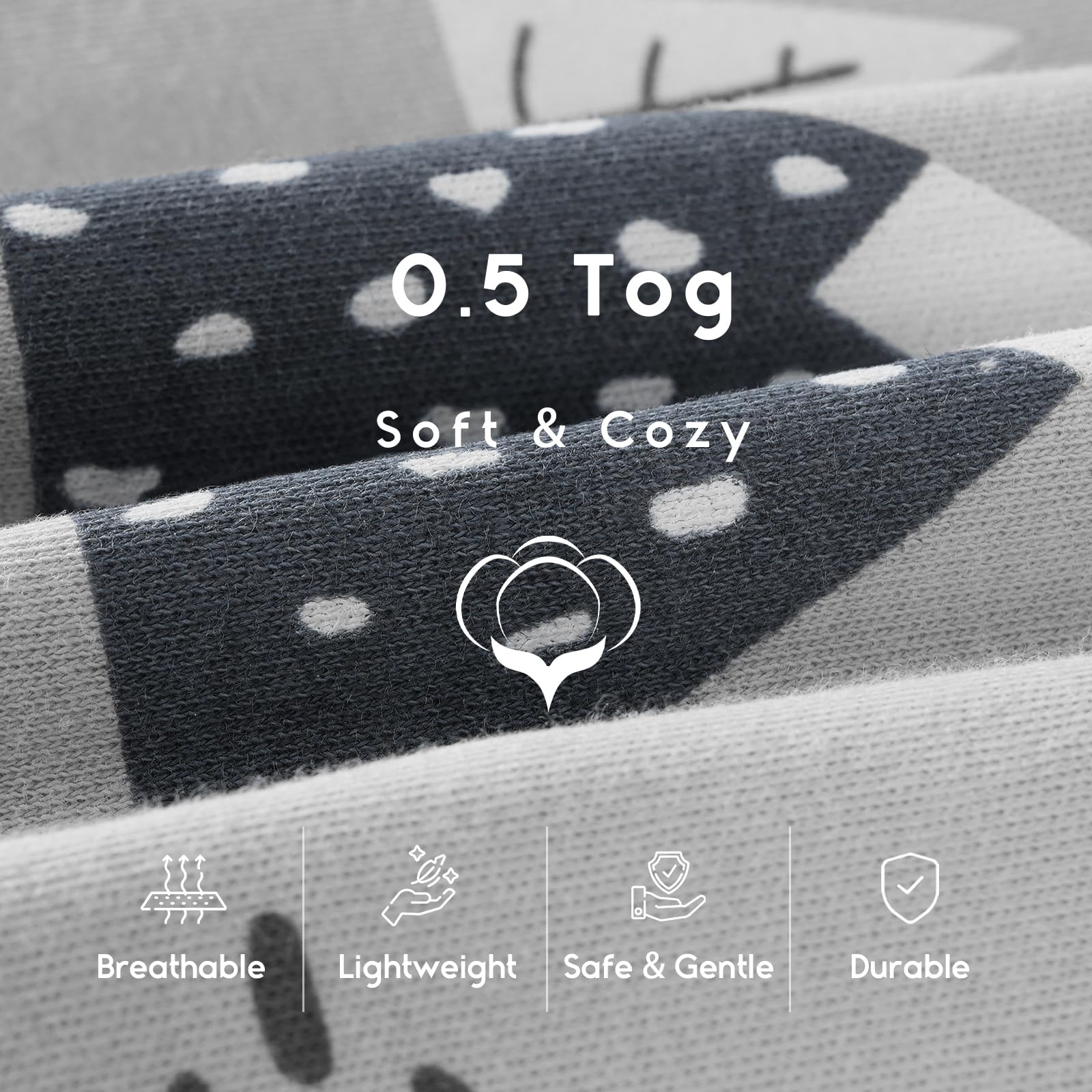 Lightweight 0.5 Tog :The baby sleep sack 0.5 Tog is suitable for moderate temperatures from 75 to 80°F as an ideal option for spring, summer, autumn or taking a nap in air-conditioned rooms.We insist on quality control of baby wearable blanket, it can be withstand millions of washes and achieve a shrinkage rate of less than 2% after machine washing and dry on low heat (<30°C/86°F).