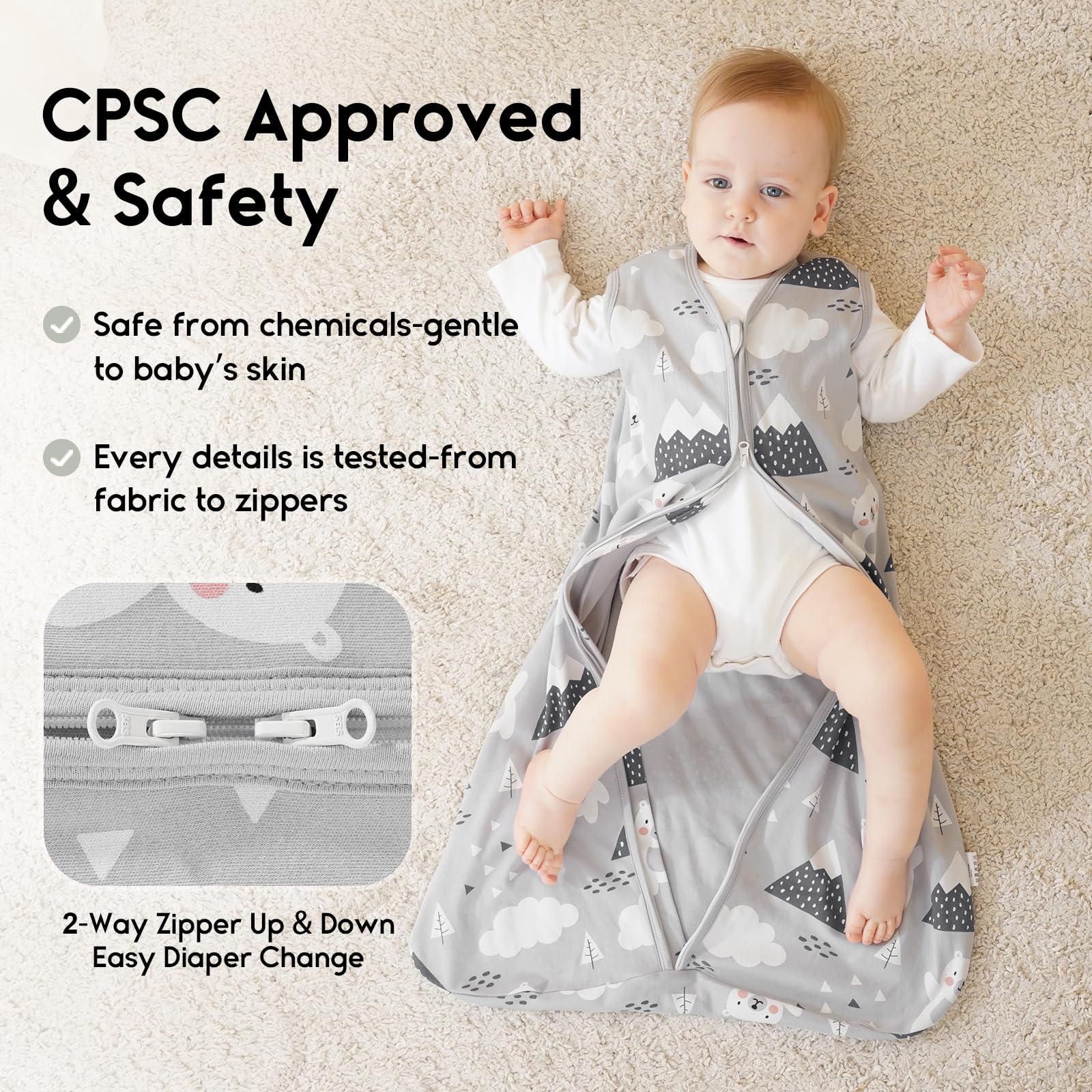 100% Organic Cotton Comfort - This baby sleep sack made with 100% Organic Cotton, super soft and breathable for comfort. The sleeveless design helps regulate baby's temperature, reducing overheating risk and ensuring warmth and cozy.