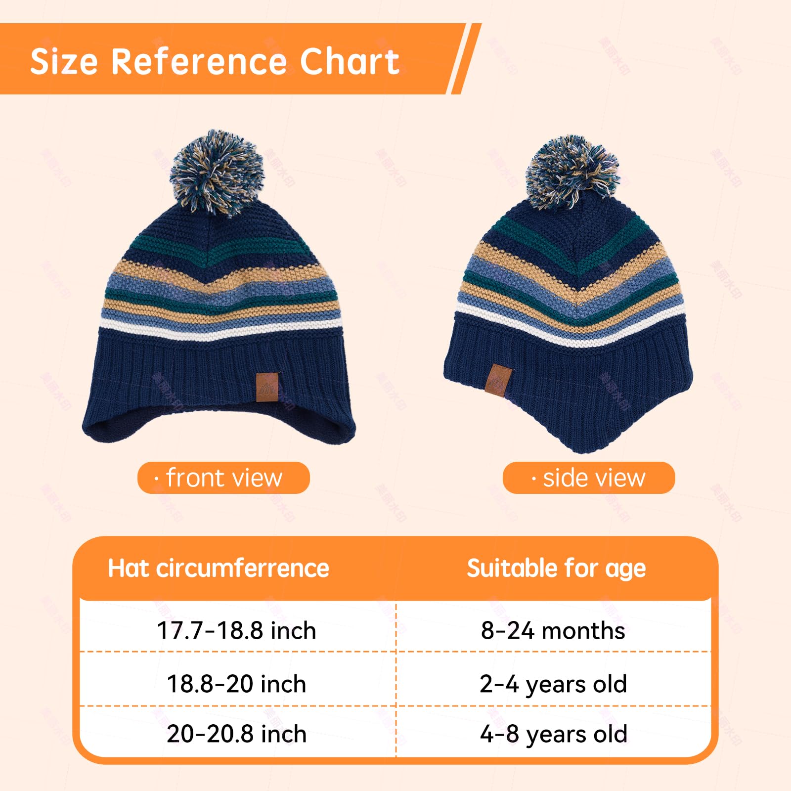 Typically Fits 1-8 Years,There is a fur ball on the top of the hat,Ear protection design extends to the face to protect the warmth of the baby's face