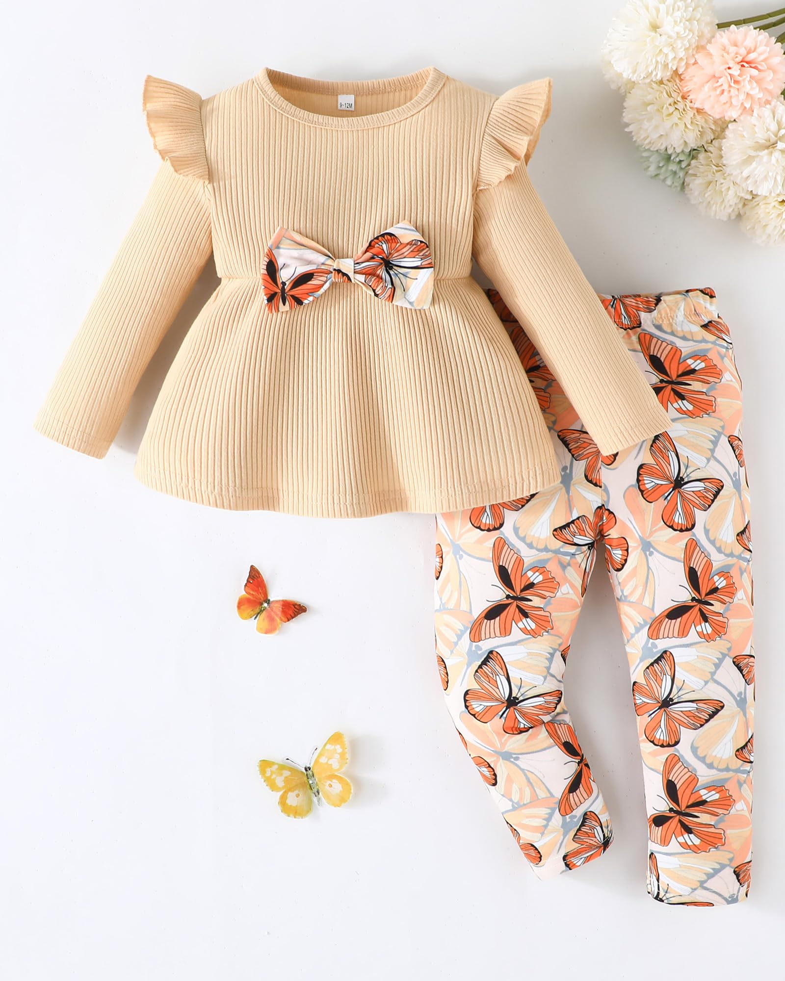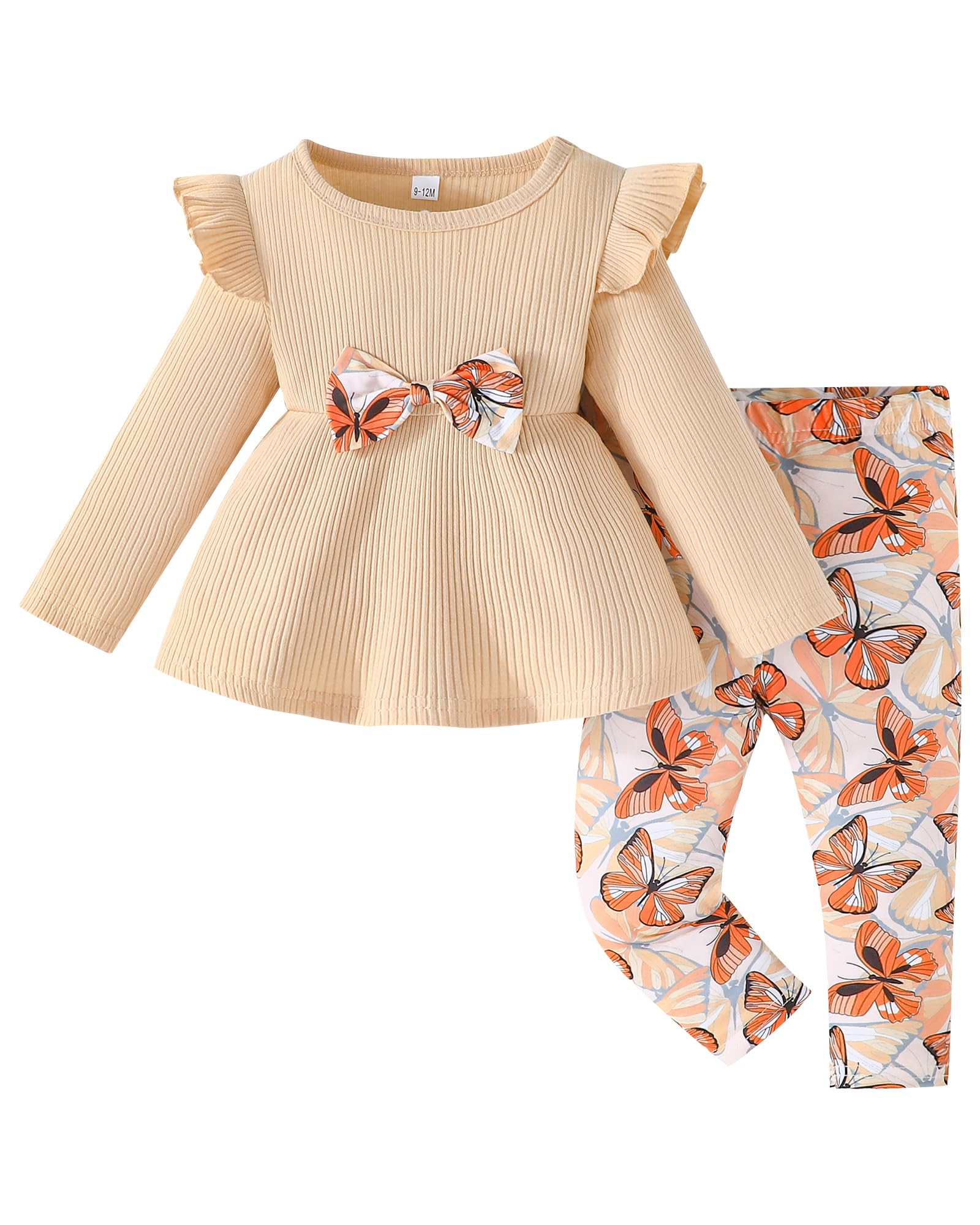 Cute Bow & Vibrant Butterfly Patterns: This Infant to Toddler Girl Clothes Sets Replaces Boring Basic Wear for 6M-4Y Girls' Social Events - Boosts Charming-Look with Photo-Ready Cuteness!