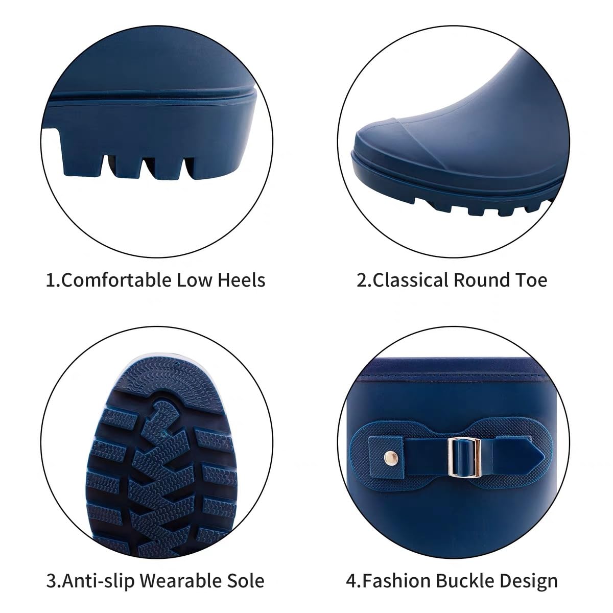 Wearing fashion seamless waterproof rain boots are perfect for garden, camping, school, travel.
