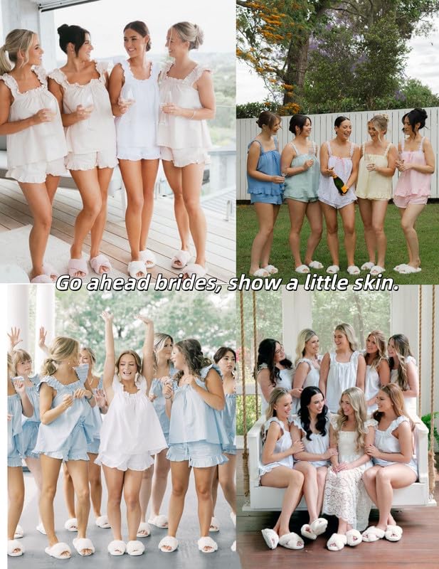 Bridal Ruffle Pajama Set: Go ahead brides, show a little skin. This sexy ruffle pajama set, featuring a ruffled tank top and mini ruffle shorts, was practically made for romantic summer days and honeymoons. They're also lightweight and easy to pack, making them the perfect travel companion.