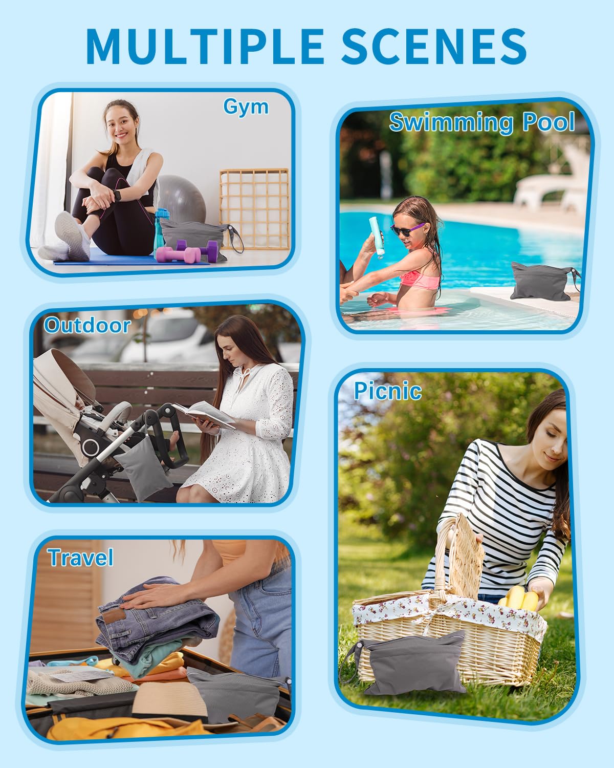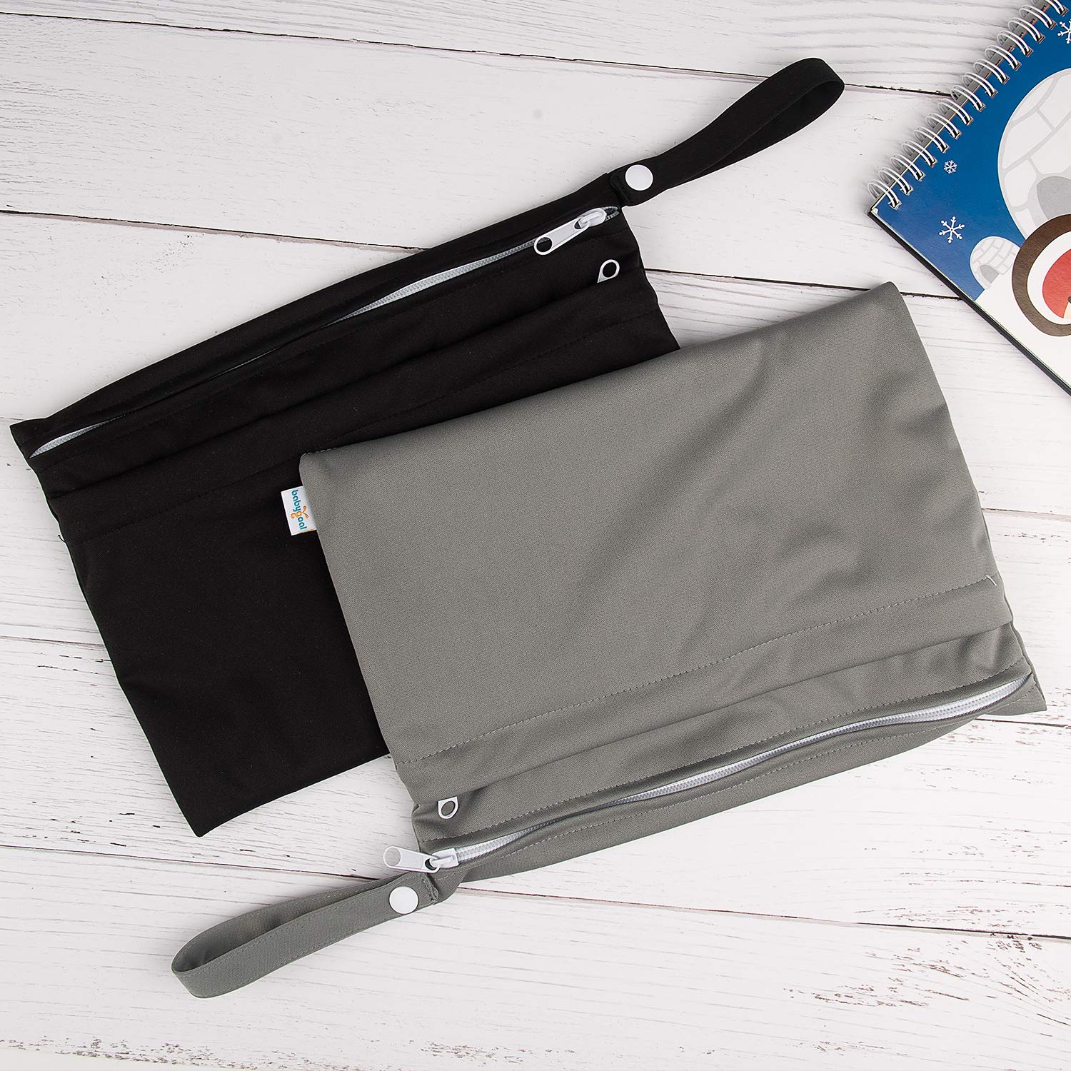 Double-Pocket Design with Snap Handle: Each wet bag contains two pockets, which comes with two zip closures to ensure that nothing will drop out of the bag and better to keep the clean and dirty items separately. With the snap handle design, you can unbutton the haddle and easily hang the bag on the stroller or door knobs, towel rod ect. anywhere you want.