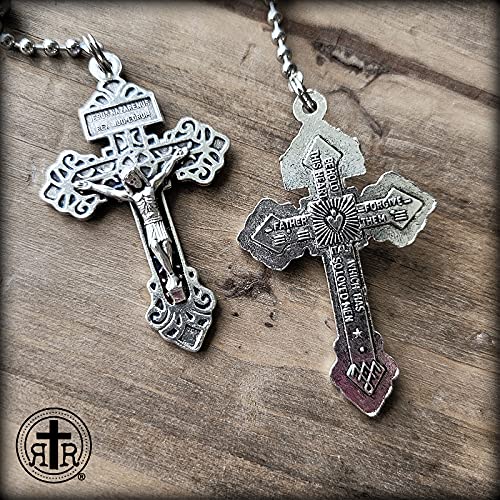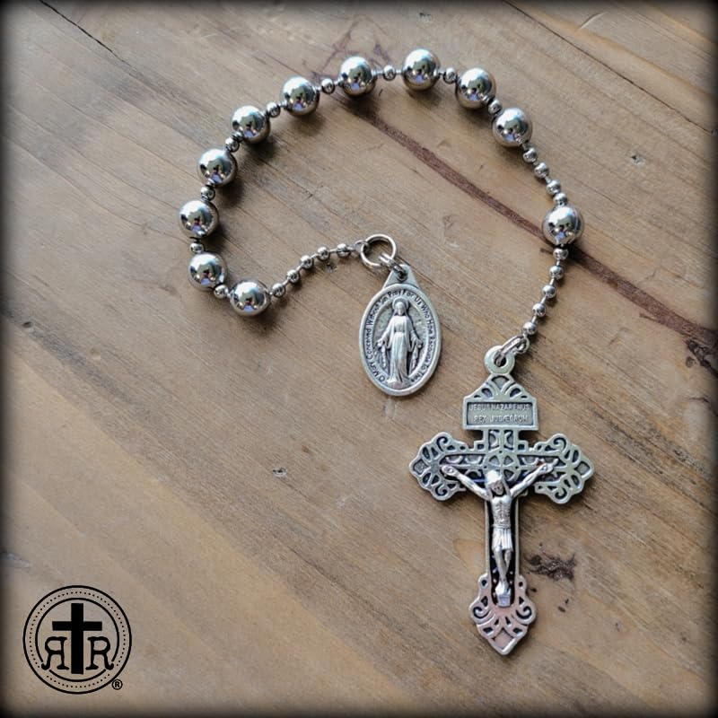 【CRAFTSMANSHIP】These WWI Battle Beads Rosaries are the original Battle Beads handmade by the Rugged Rosaries’ artisans in our Texas studio since 2012. These are NOT the inferior quality mass-produced copies! We use brass ball chains with silver patina. They are strong, non-magnetic, non-corrosive, and weighty feeling. The Our Father beads are slightly larger to aid your meditative prayer. The beads glide smoothly through your fingers.