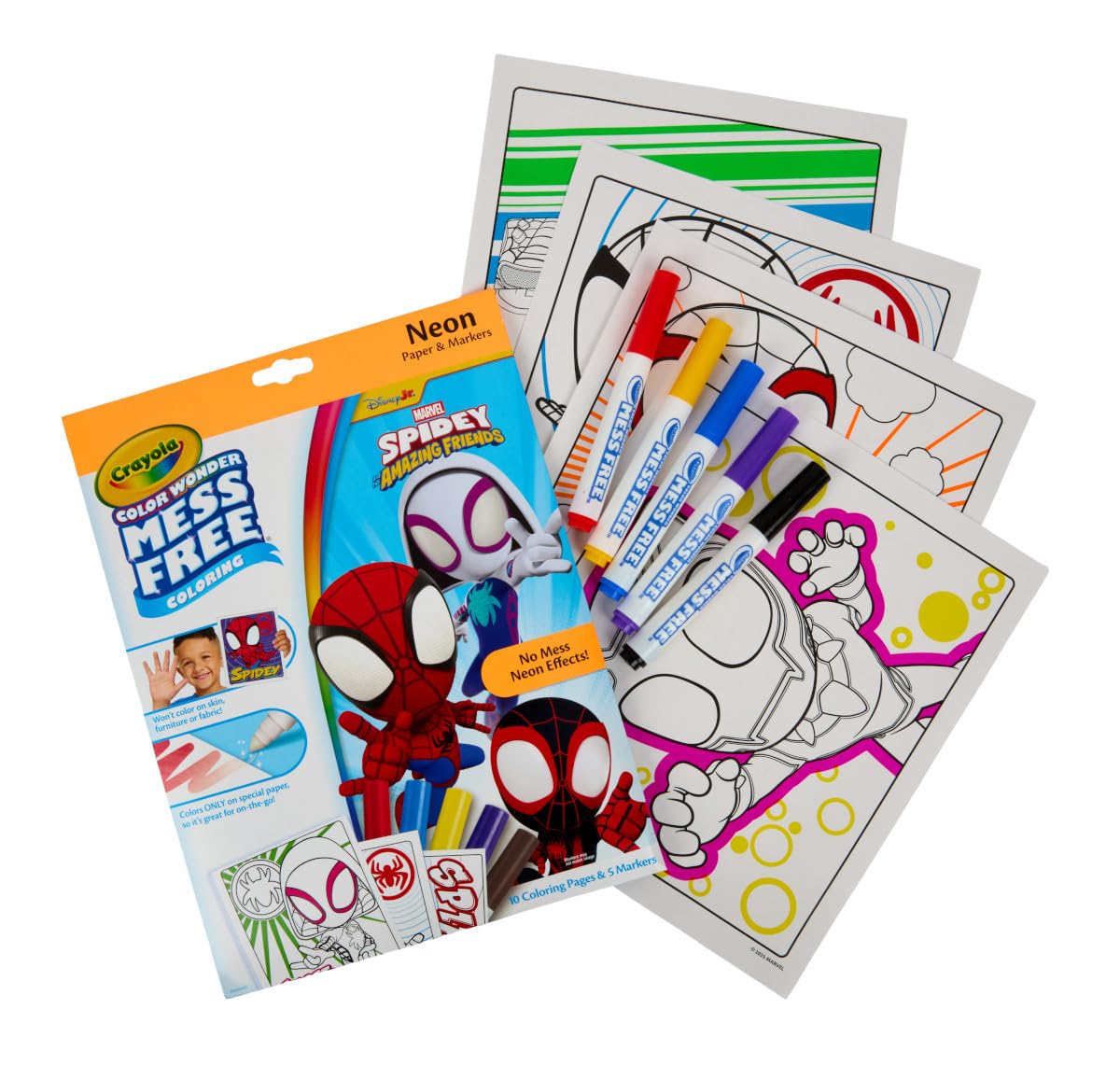 JOIN THE SPIDER VERSE WITH SPIDERMAN COLORING PAGES: Spiderman fans will love revealing shimmery neon scenes of their favorite Marvel character using mess free Color Wonder markers.