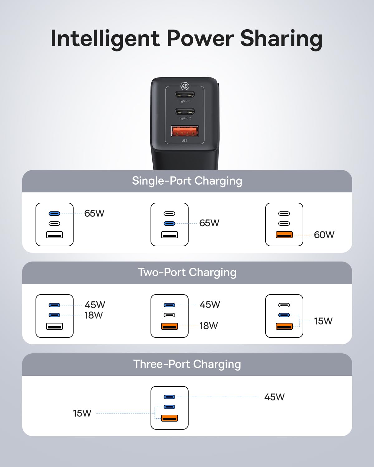 What's in the Box: Baseus 65W USB C Charger, 100W USB-C to USB-C Cable with E-marker Chip included, User Guide, our friendly customer service.