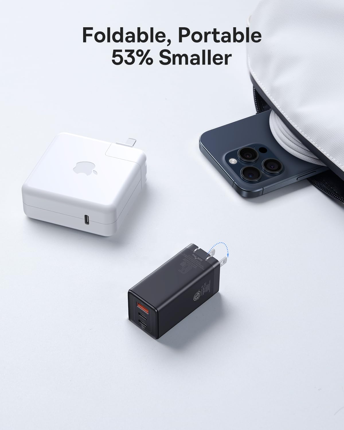 GaN Technology: This GaN charger is 5x faster, 30% smaller and with less heating while designed with 6 charging protection for your safety.