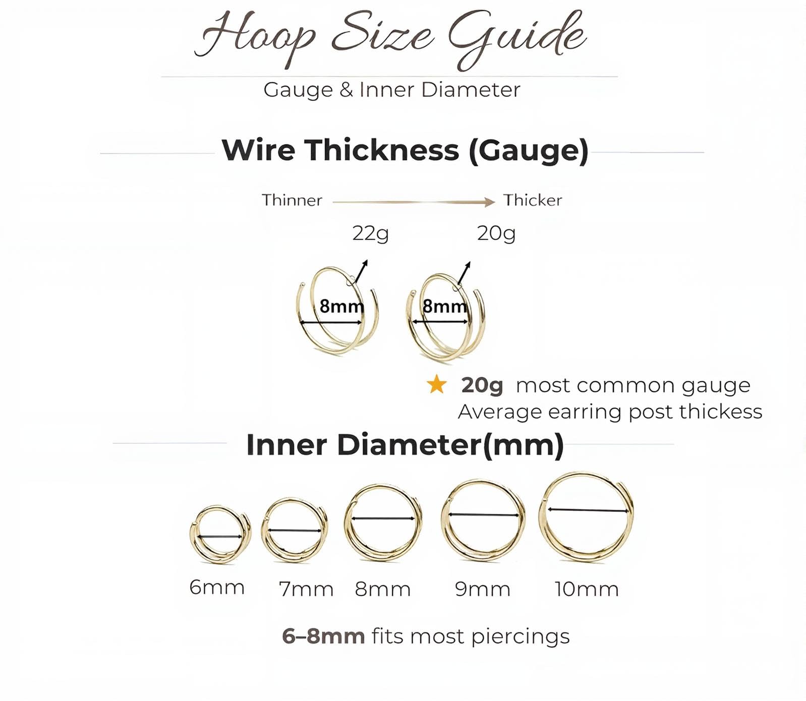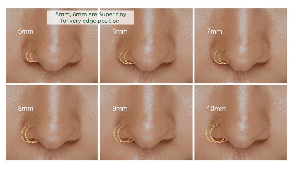 [Nose Rings Hoops]: One nose hoop only, small and thin dainty spiral nose ring double hoop, available sizes: 6mm 7mm 8mm 9mm 10mm, with options of thickness: 20 gauge and 22 gauge. Please follow the listing instruction to measure and choose your perfect fit