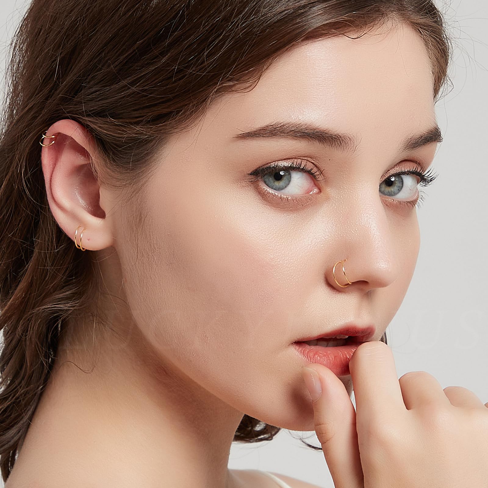 [Hoop Nose Rings for Women]:You can also use this nose hoop ring as a double hoop earrings, double helix earring or cartilage earring…you name it