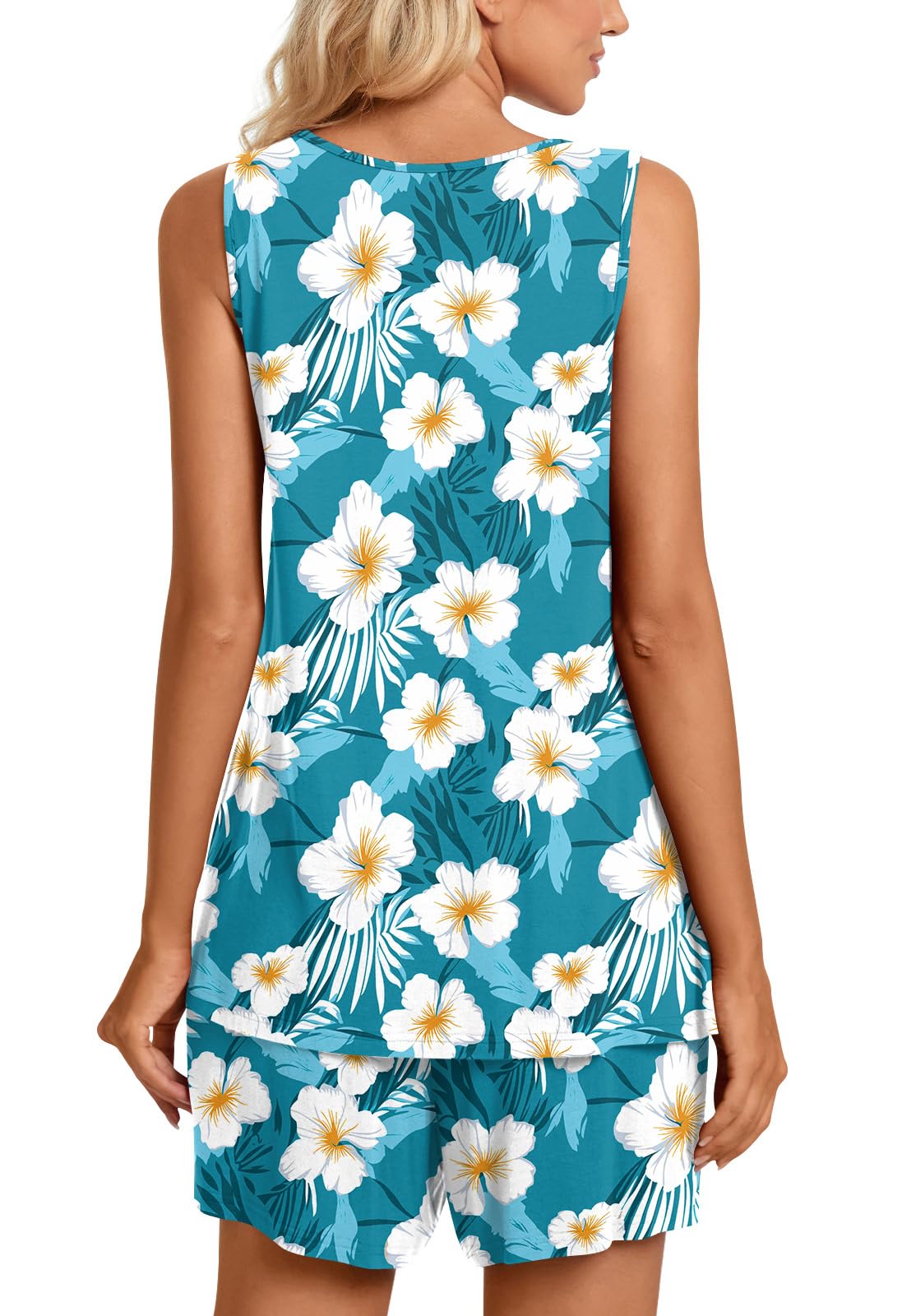 Fashion-Simple Design: Cute two piece outfits, sleeveless tops, soft nightwear, scoop neck and front pleated detailed design. Elastic waistband shorts, casual loose comfy, graceful and easeful