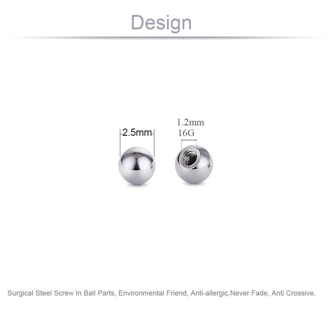 ❤Size:Fit for 16G(1.2mm ) Bar, Ball Size is 2.5 mm,This Ball is so Small,A Good Choice for Your Piercing Jewelry When You Are Working