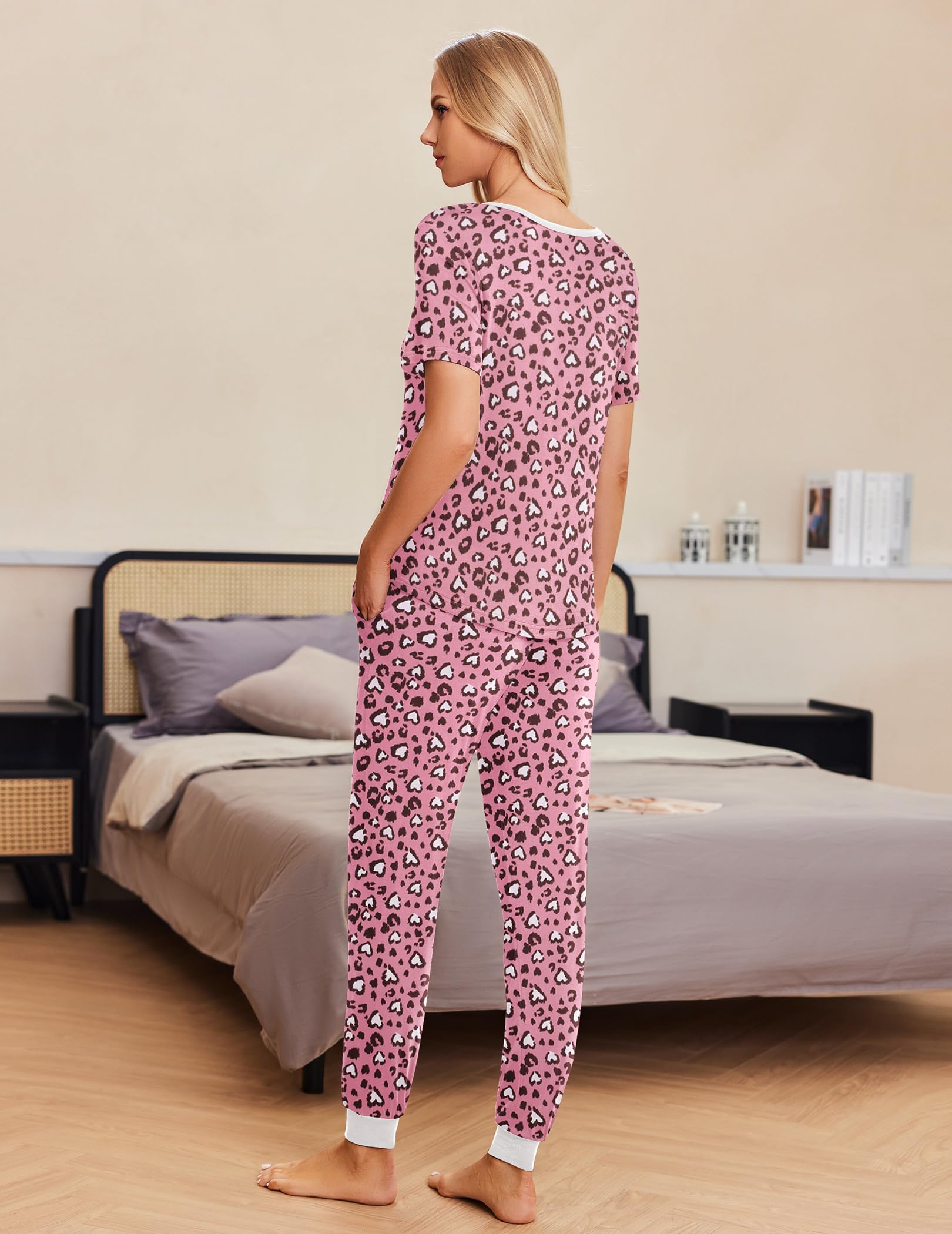 Short Sleeve Tops: The sleepwear pj features with v-neck and button tops. Simple pullover styling for easy fit. Stylish and elegant ladies sleepwear night set