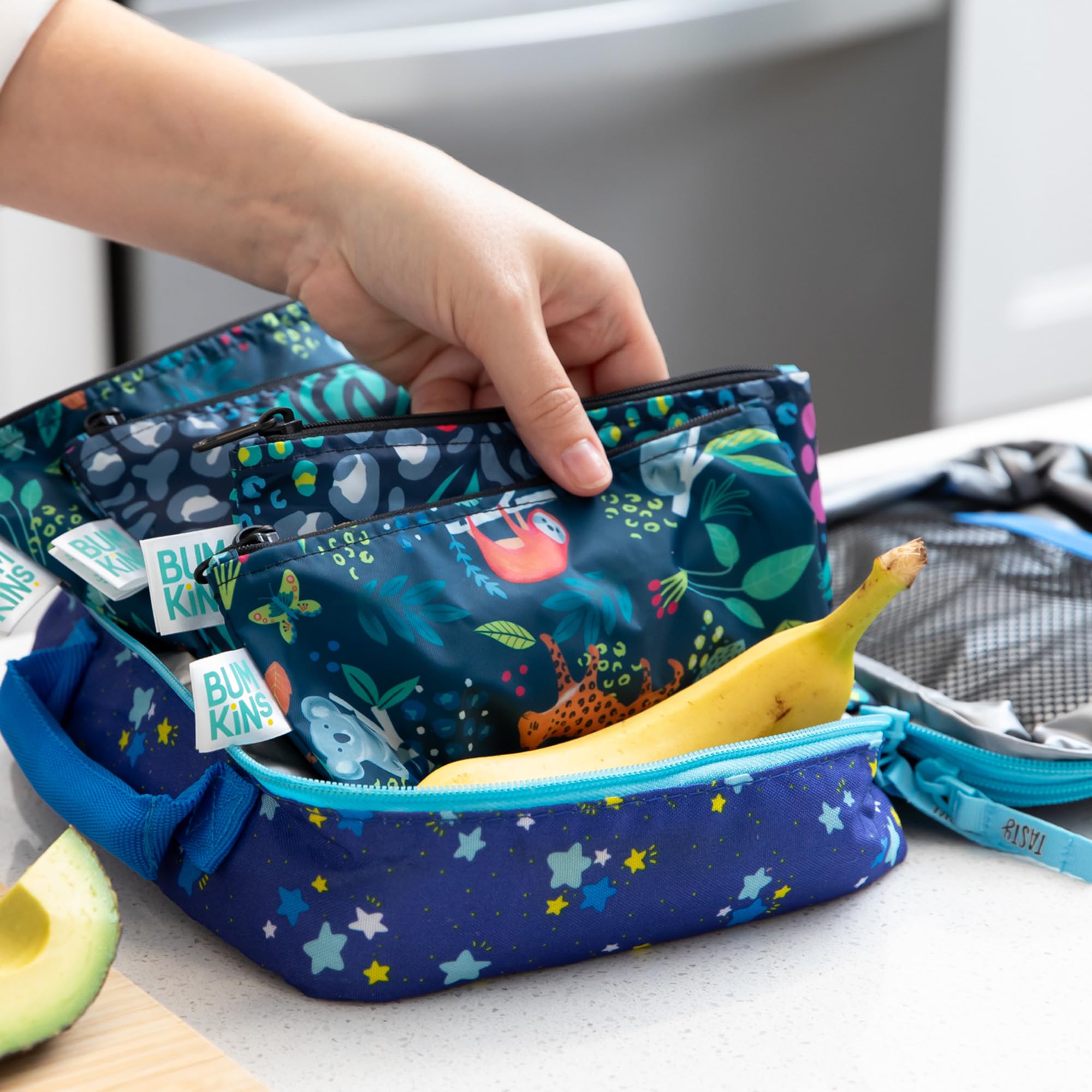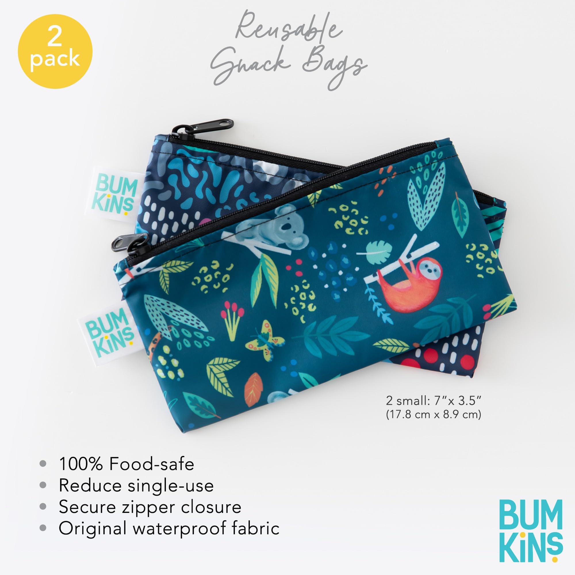 REUSE AND REDUCE WASTE – Bumkins reusable cloth snack bags are made from our original waterproof fabric with zippered closure; not just for lunch, they make excellent organizers for storage and travel; stash inside purse, diaper bag, or travel bag