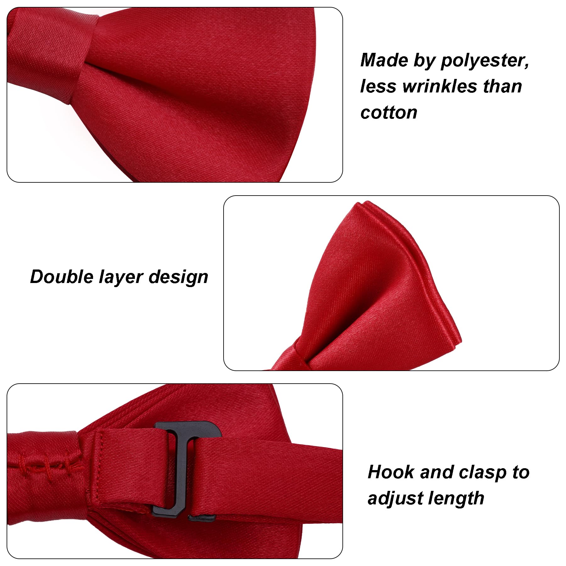 【APPLICABLE OCCASIONS】:The classic solid color bow tie is great for many occasions, such as everyday wear, dress up your kids for school, holiday party, cosplay, graduation, wedding.it's unisex bow tie, also suitable for men, teens, pets.