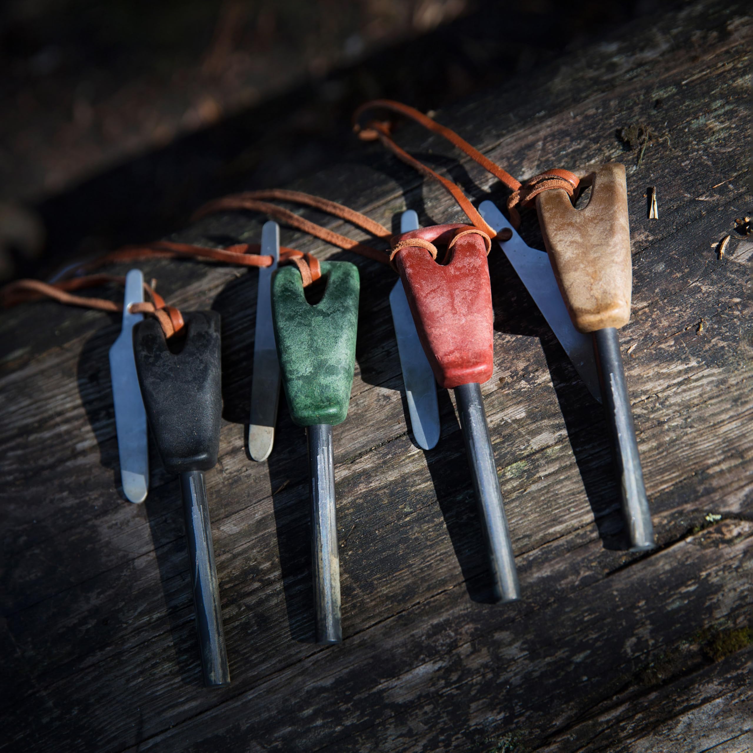The reindeer leather cord tied in the handle gives extra-support and keeps the striker on hand. The ferrocerium rod lasts in use for years.