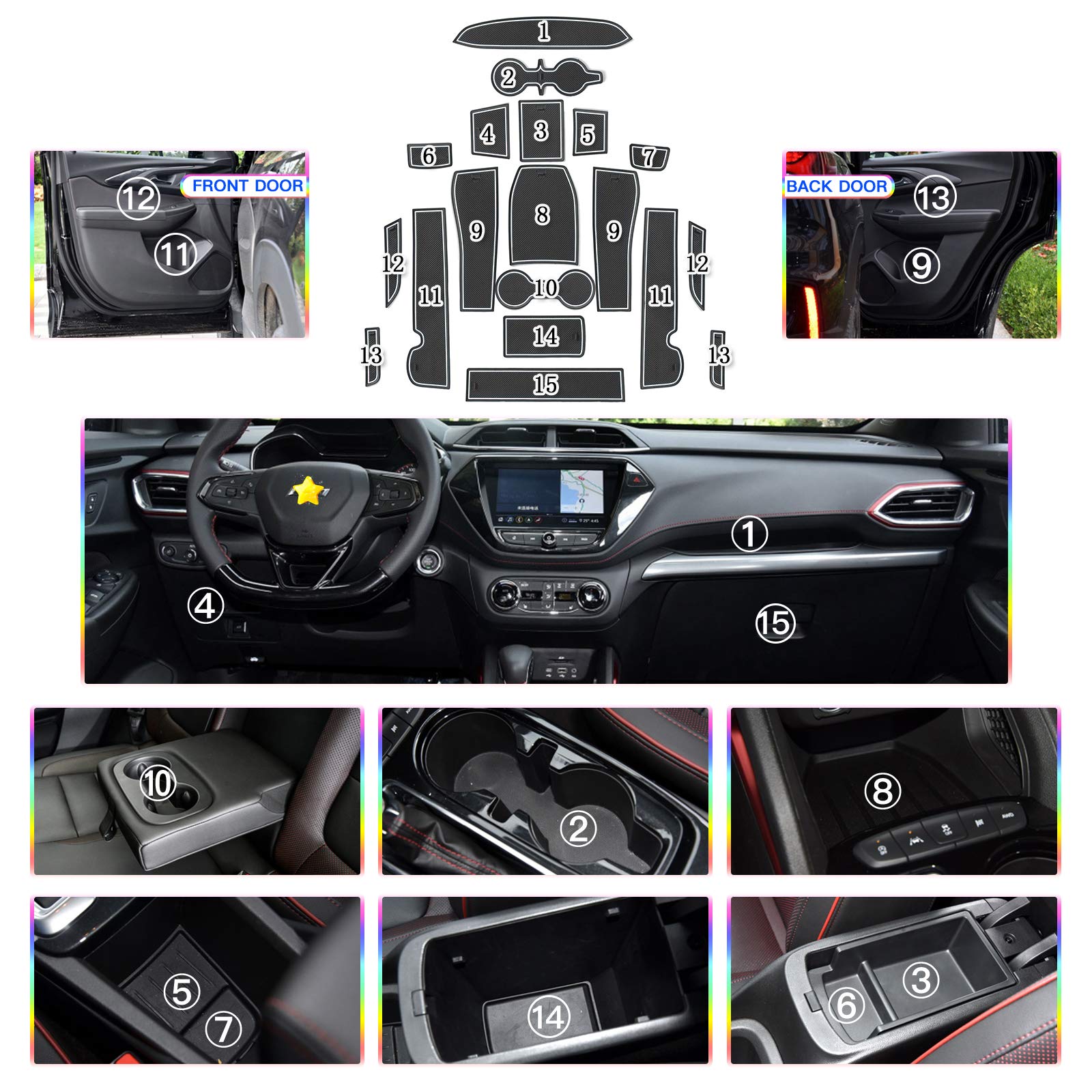 Compatible with 2021 2022 2023 2024 2025 2026 Chevrolet Trailblazer LS/LT/Activ/RS Door Cup Arm Box Storage Mat Pad
