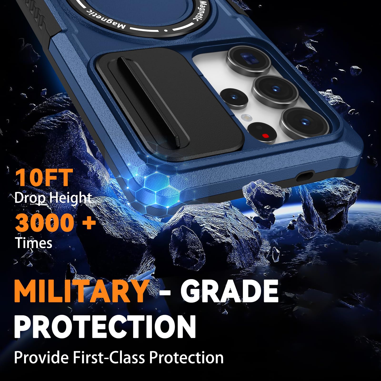 【Military Grade Protective】This Samsung Galaxy S25 Ultra 6.9 inch cover certified by the Military Standard, survived over 3,000+ drop tests from up to 10 FT. Provides excellent shock and drop protection, protecting your phone from accidental drops, shock, bumps, impacts, and scratches. A 2.0 mm offset border over the camera opening prevents the lens from being scratched; a 1.2 mm bezel over the screen keeps your iPhone screen from damage.