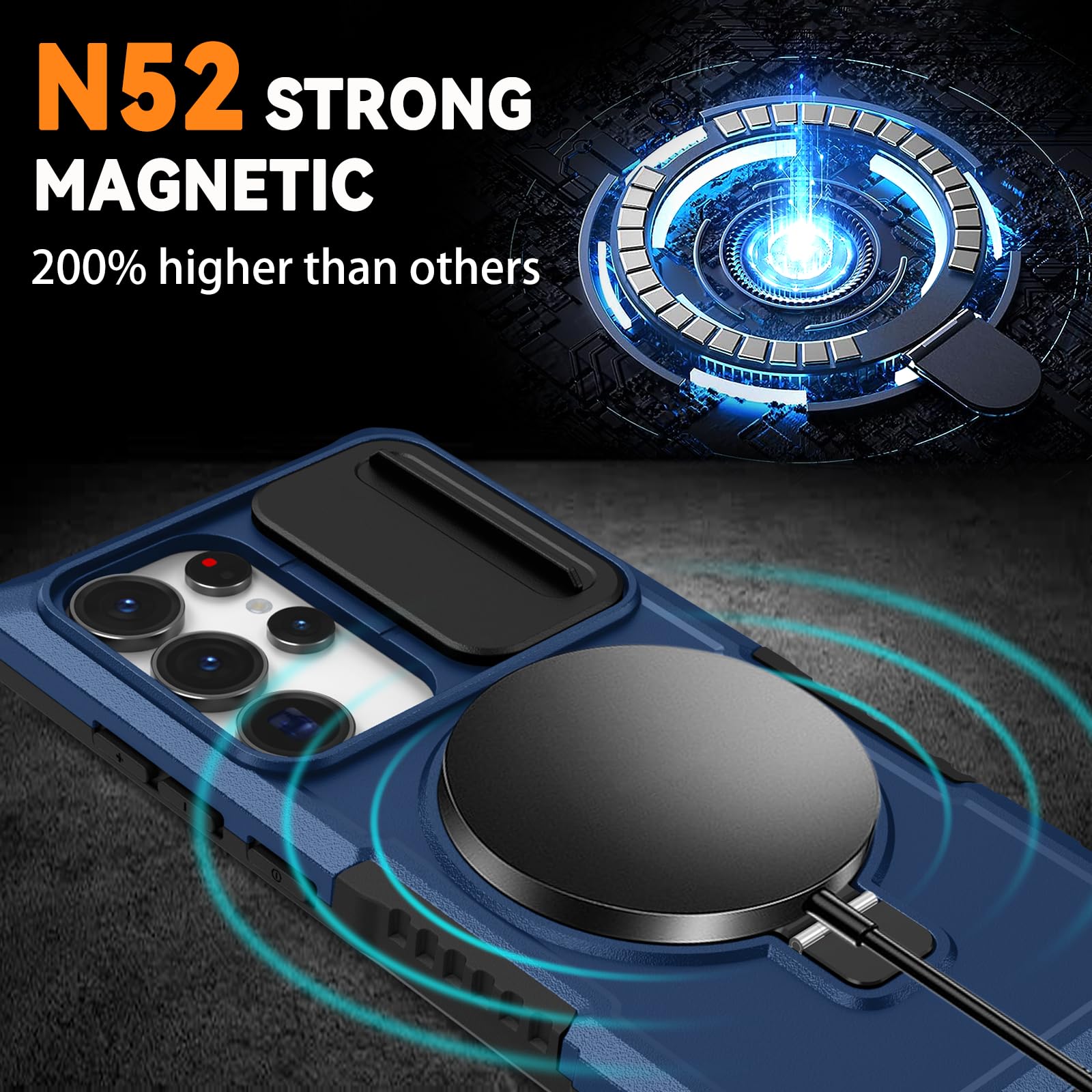 【Magnetic Ring Stand】This Samsung S25 Ultra phone case with magnetic ring kickstand provide two stand modes for vertical and horizontal viewing, can help you keep your hands free when watching web pages and videos. It can also be attached to a magnetic car mount (Not includes the magnetic car mount holder).